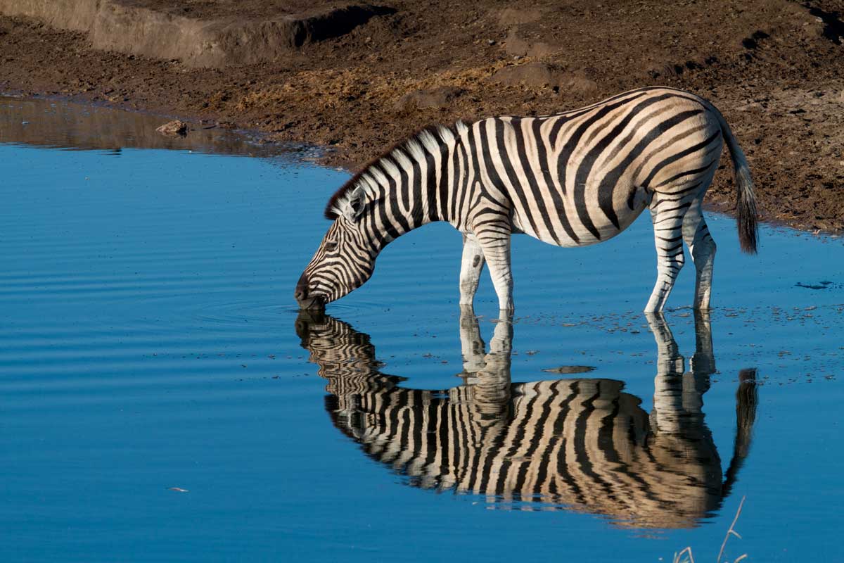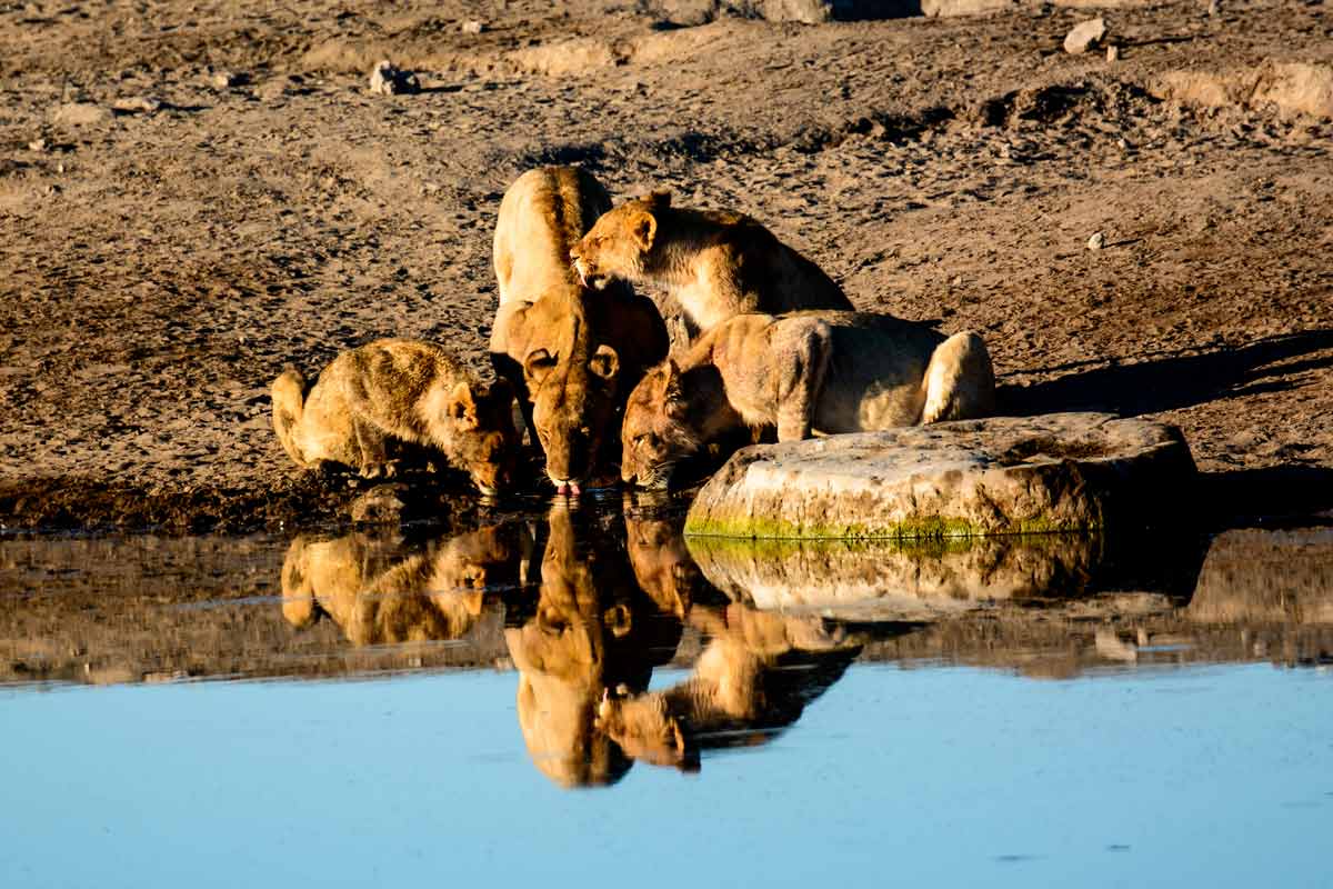Départ matinal vers les plaines d’Etosha. Journée complète de safari avec votre véhicule au sein du parc en traversant le parc d’est en ouest. Etosha, tire son nom de la dépression d’Etosha Pan (qui signifie point d’eau asséché), une vaste dépression de 120 km de long sur 72 km de large. Le Parc National d’Etosha offre sans conteste l’un des plus beaux tableaux de la vie sauvage au monde. Il embrasse plus de 22 000 km² au total où vivent 114 espèces de mammifères, 340 variétés d’oiseaux.