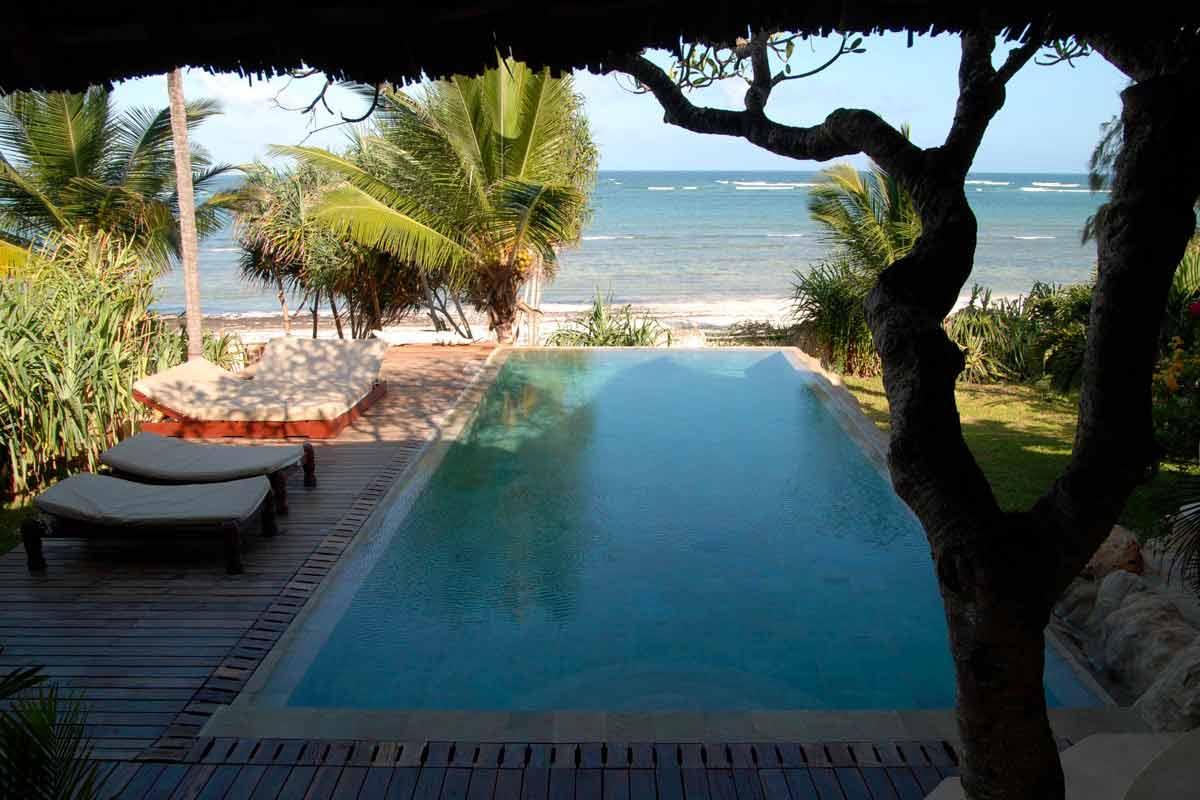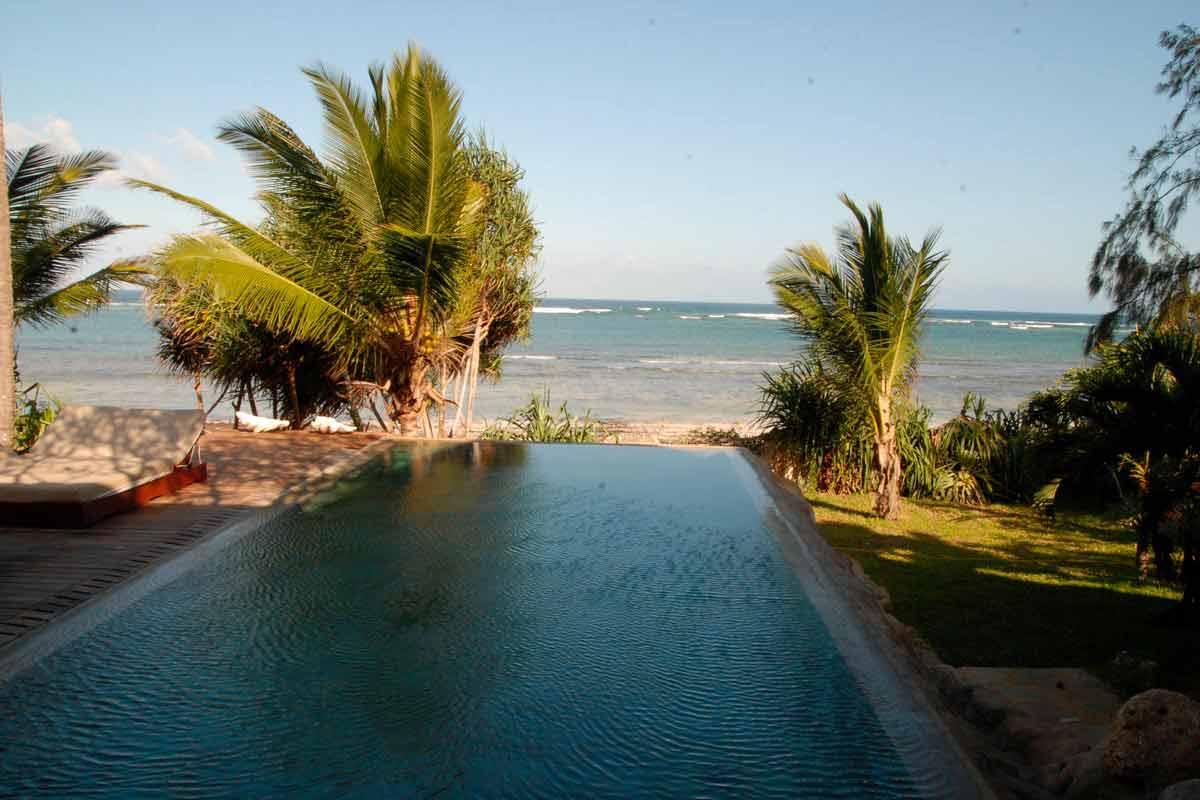 La piscine à débordement offre une belle vue sur la plage. Celle-ci peut être utilisée à marée haute mais la présence de corail (qui rend la baignade à marée basse impossible, comme souvent au Kenya) et d’algues, vous feront apprécier votre piscine. Et, comme elle vous est réservée exclusivement, autant en profiter!