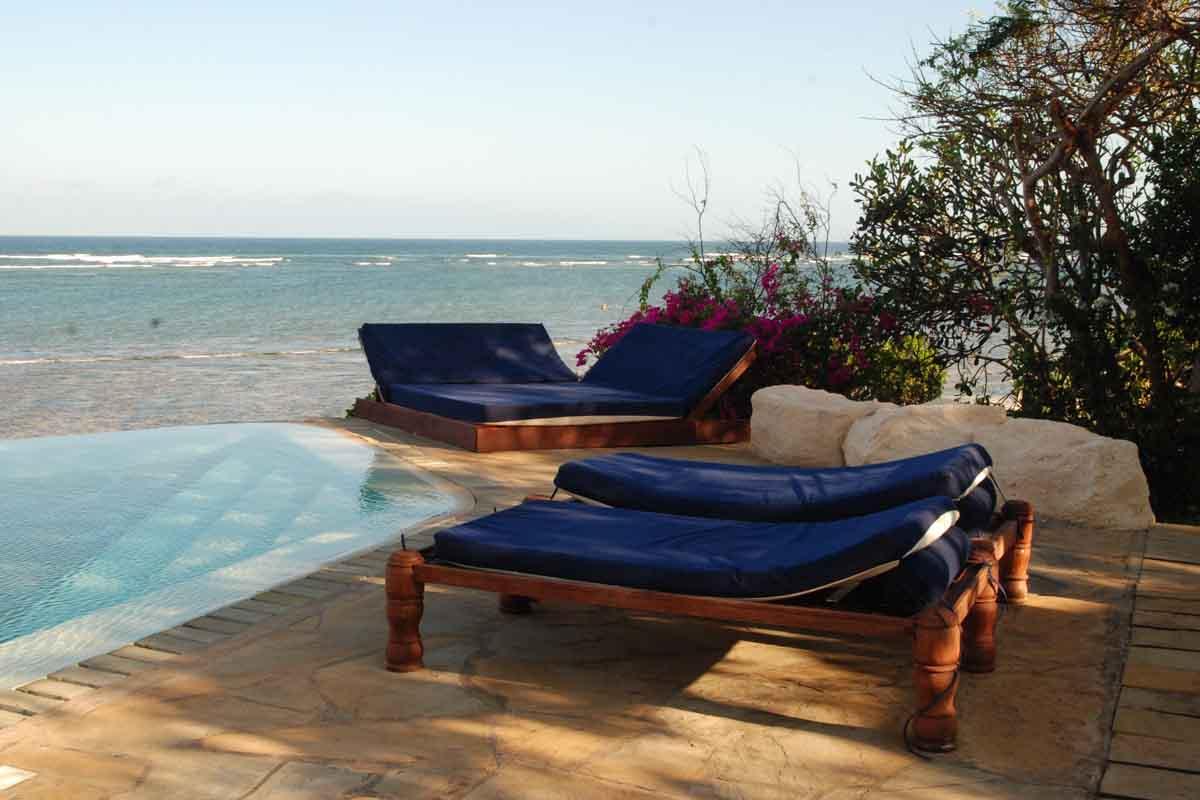 La piscine à débordement et la grande terrasse offrent une vue unique sur la plage et sur l’océan indien. La plage peut être utilisée à marée haute mais la présence de corail (qui rend la baignade à marée basse impossible, comme souvent au Kenya) et d’algues, vous feront apprécier votre piscine. Et, comme elle vous est réservée exclusivement, autant en profiter!