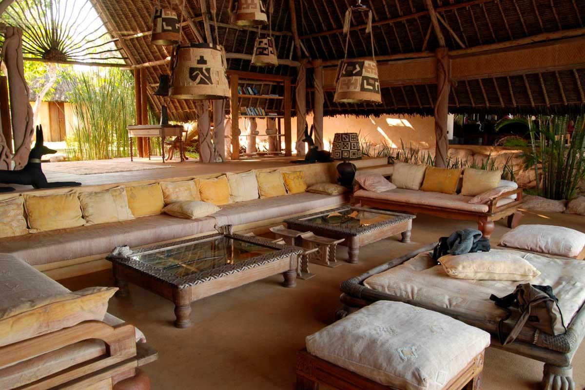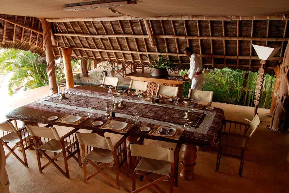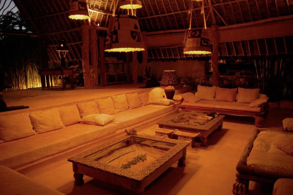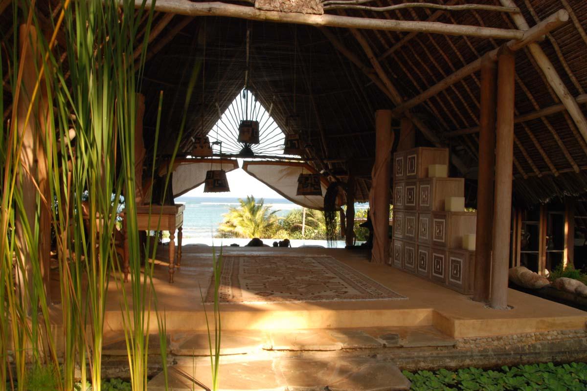 ALFAJIRI GARDEN VILLA est largement ouverte sur l’extérieur, son salon et sa salle à manger étant juste couverts par un toit en makuti.