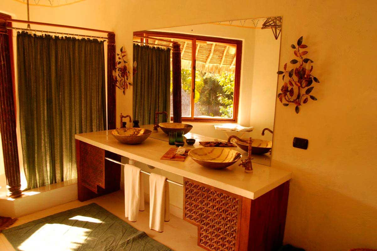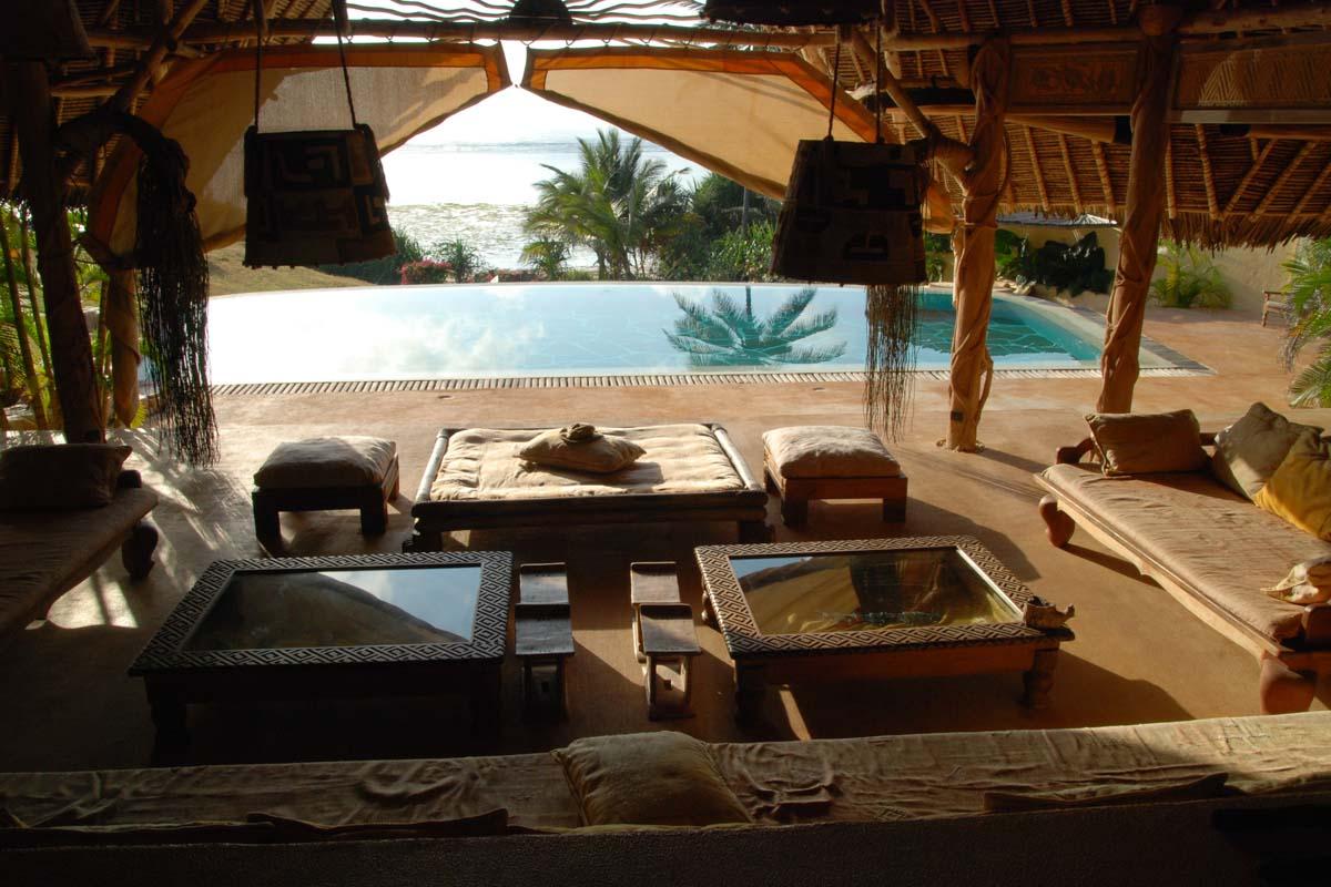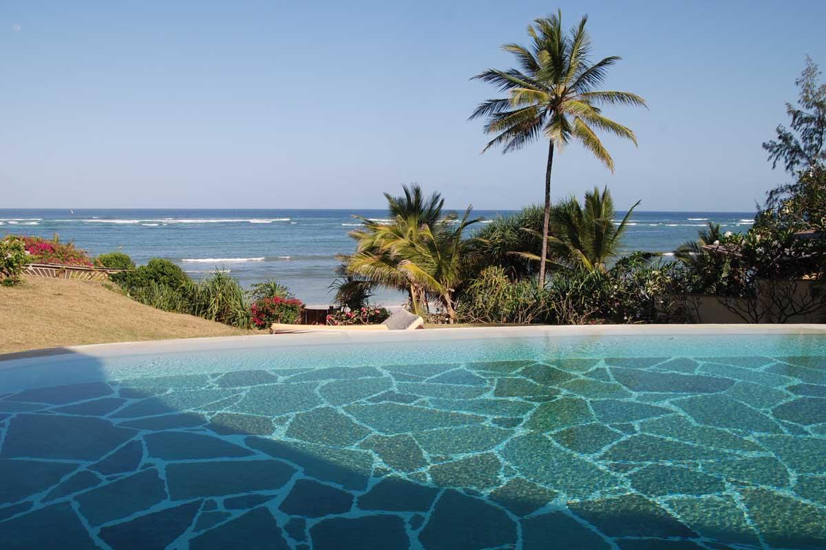 La piscine à débordement offre une belle vue sur un jardin qui descend jusqu’à la plage. Celle-ci peut être utilisée à marée haute mais la présence de corail (qui rend la baignade à marée basse impossible, comme souvent au Kenya) et d’algues, vous feront apprécier votre piscine. Et, comme elle vous est réservée exclusivement, autant en profiter!