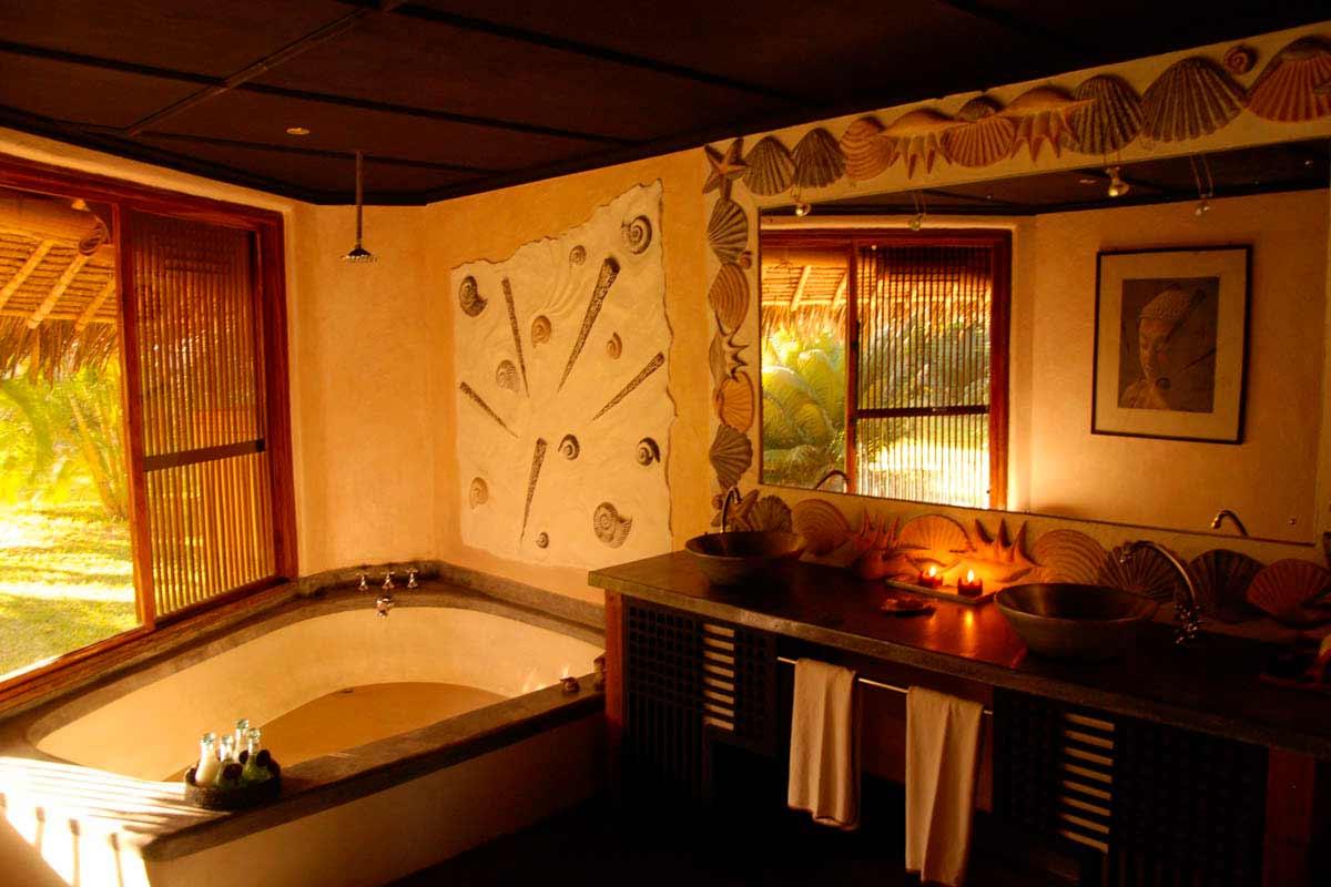 Au rez-de-chaussée : 2 chambres doubles avec baignoire. 1 chambre japonaise et 1 chambre indienne