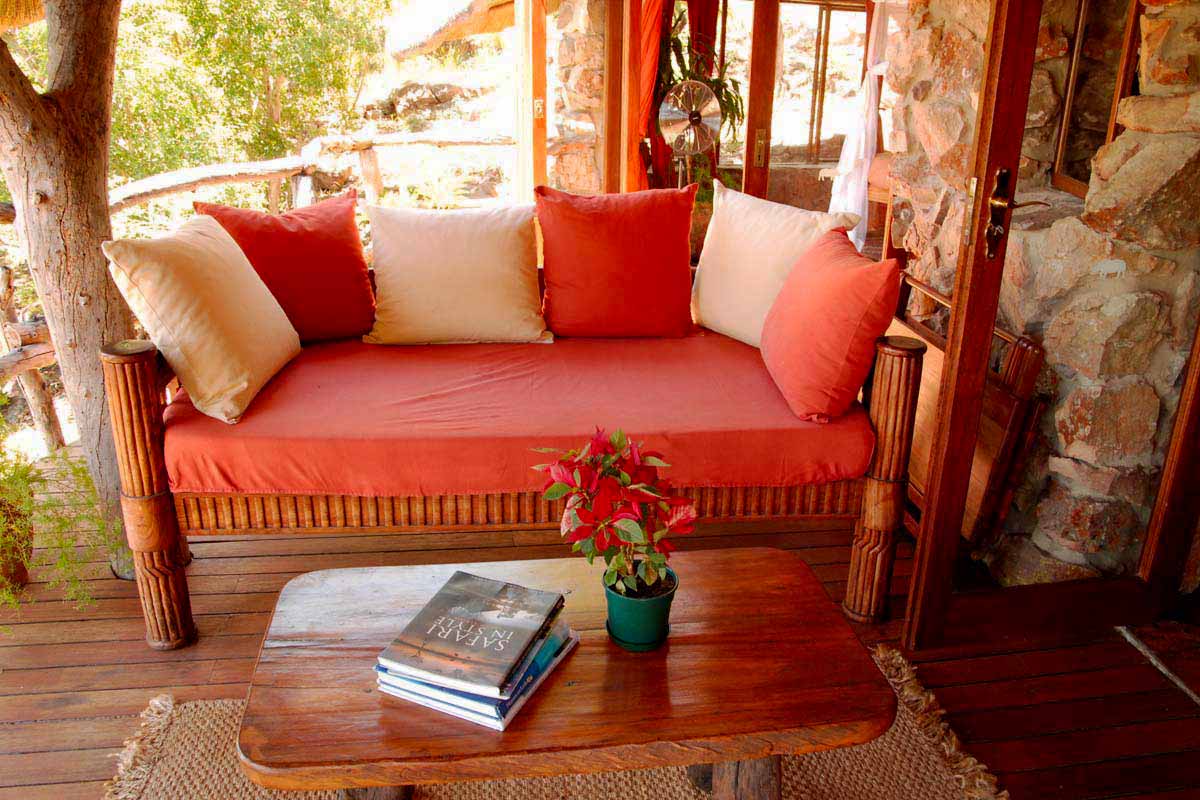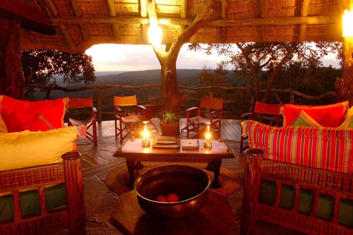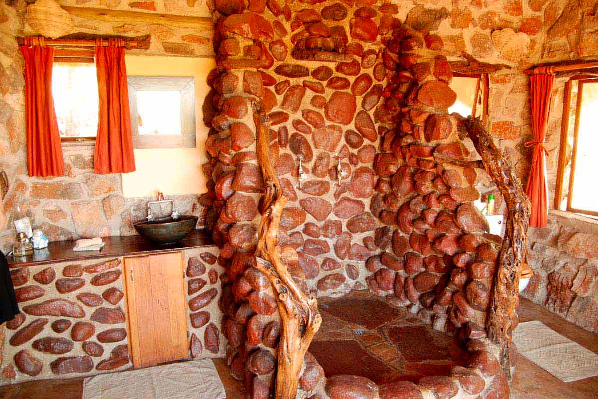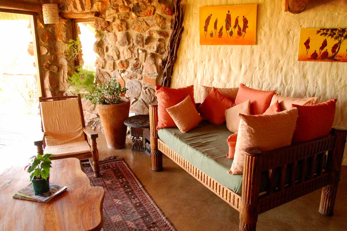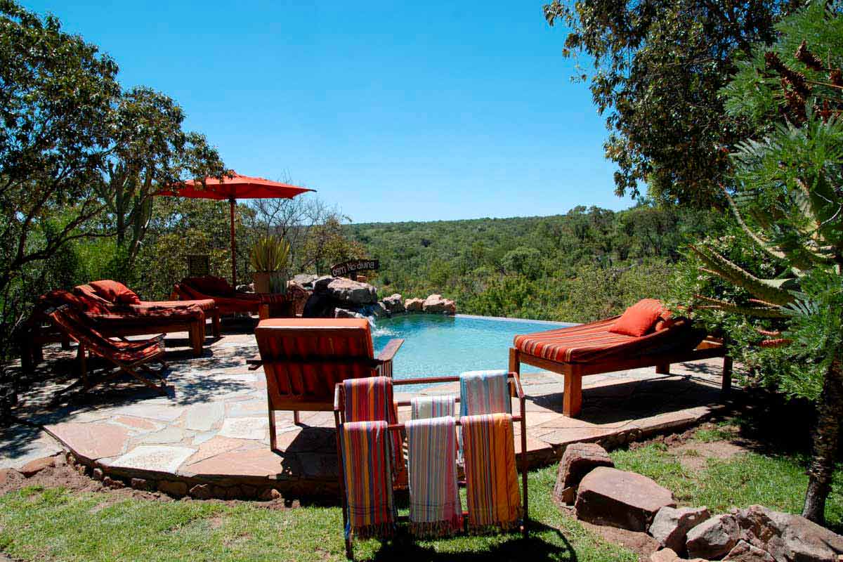 ANT’S HILL propose une décoration digne de certains lodges kenyans : grosses pierres, pièces ouvertes sur l’extérieur, peintures masaïes… Partout les pièces profitent d’une vue spectaculaire sur les massifs voisins.