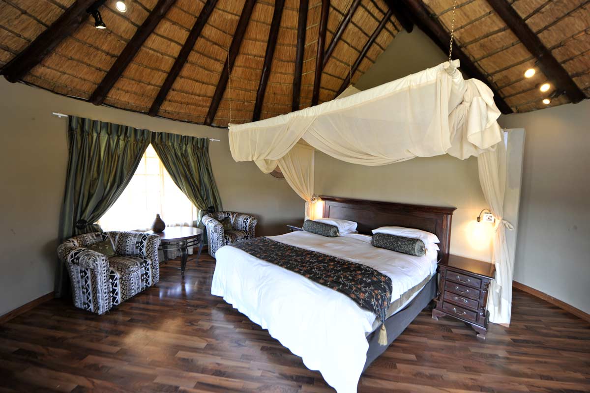 ARATHUSA SAFARI LODGE ne compte que 10 chambres « standard » au toit de chaume. Elles offrent une belle vue sur le lac et se répartissent sur sa rive.