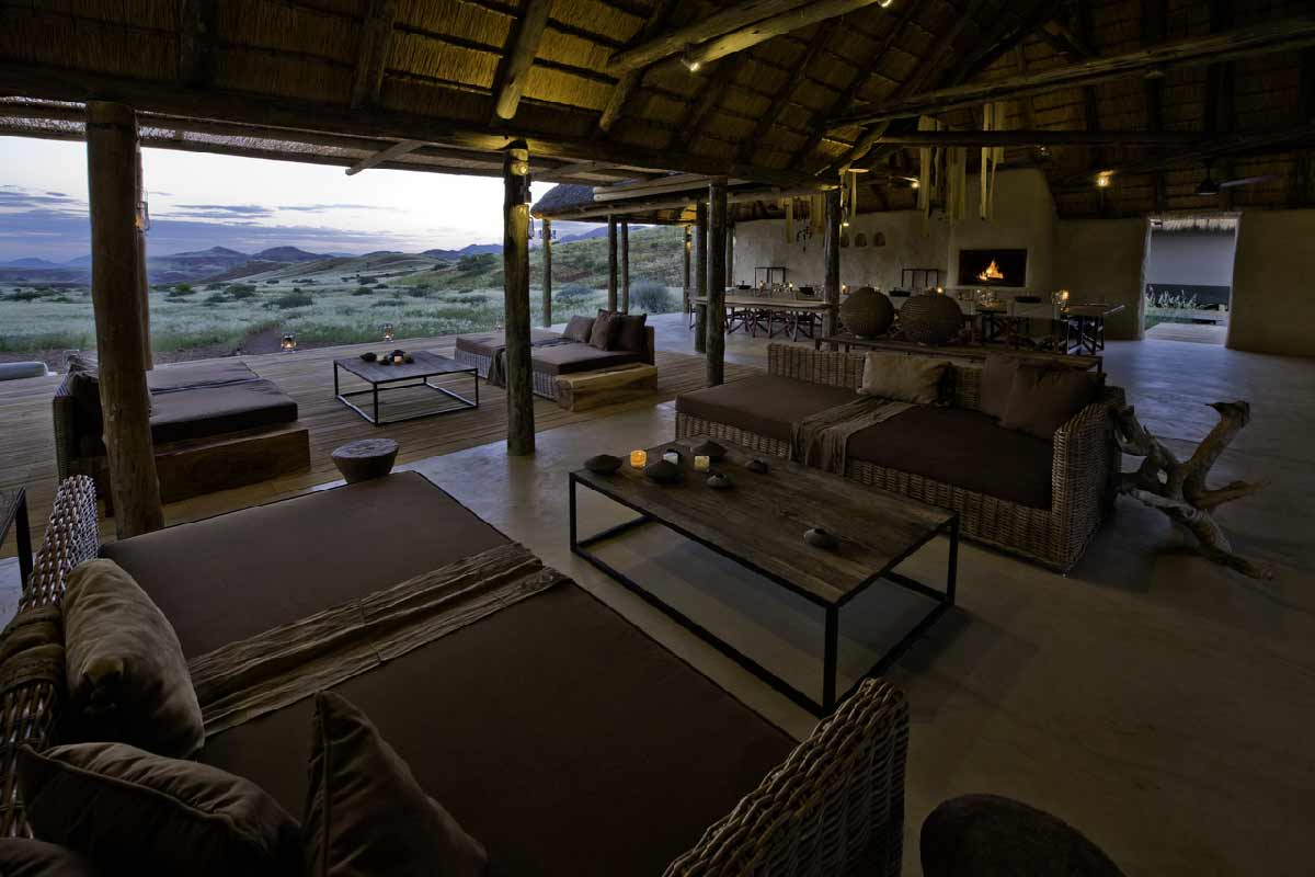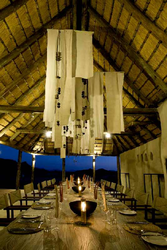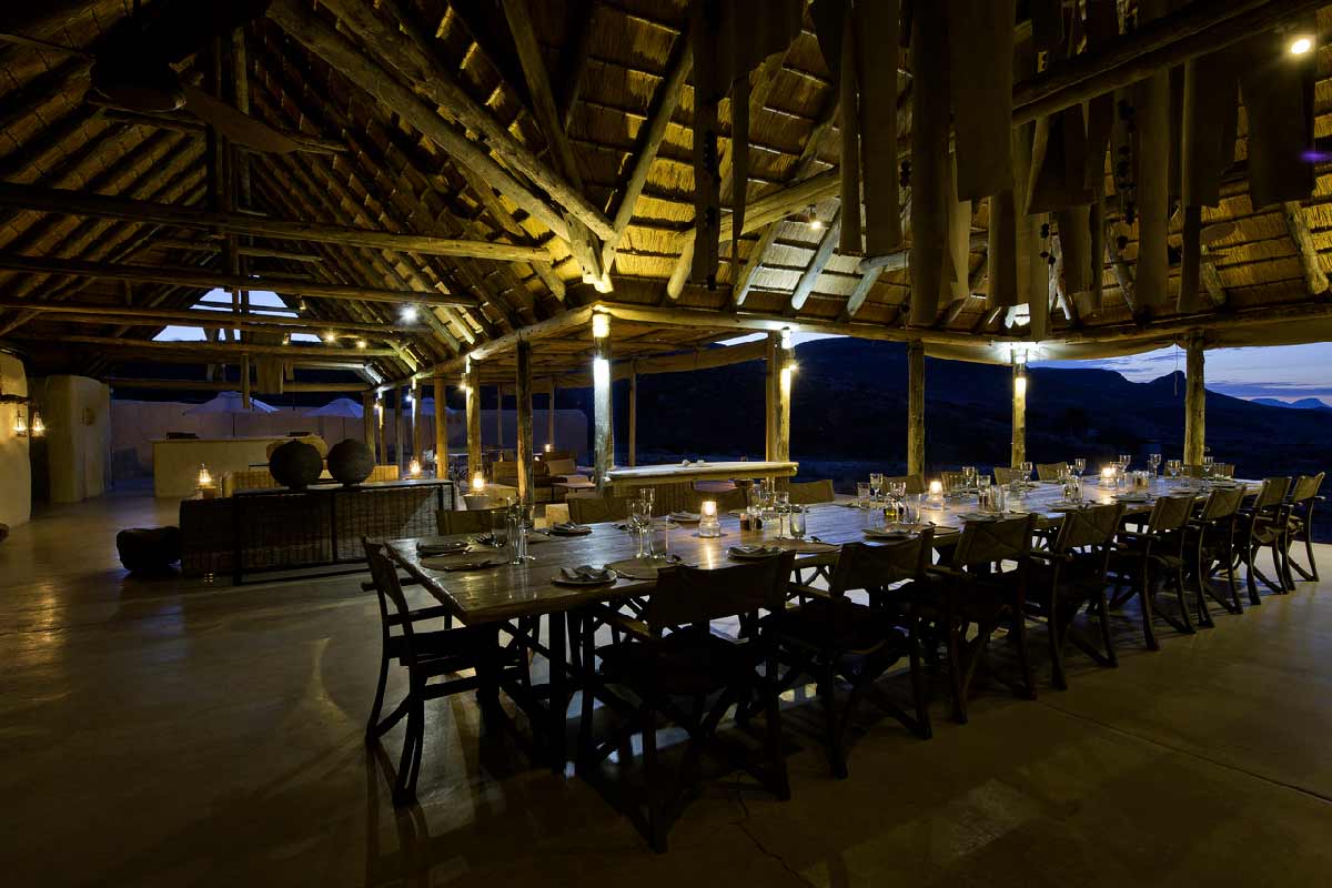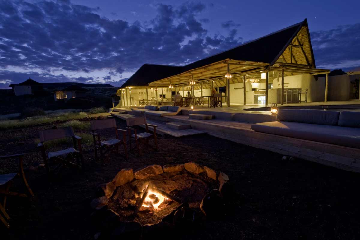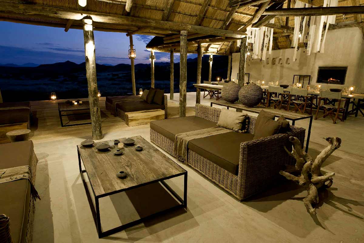 Les parties communes du Damaraland Camp (restaurant et bar) sont largement ouvertes sur l’extérieur.
