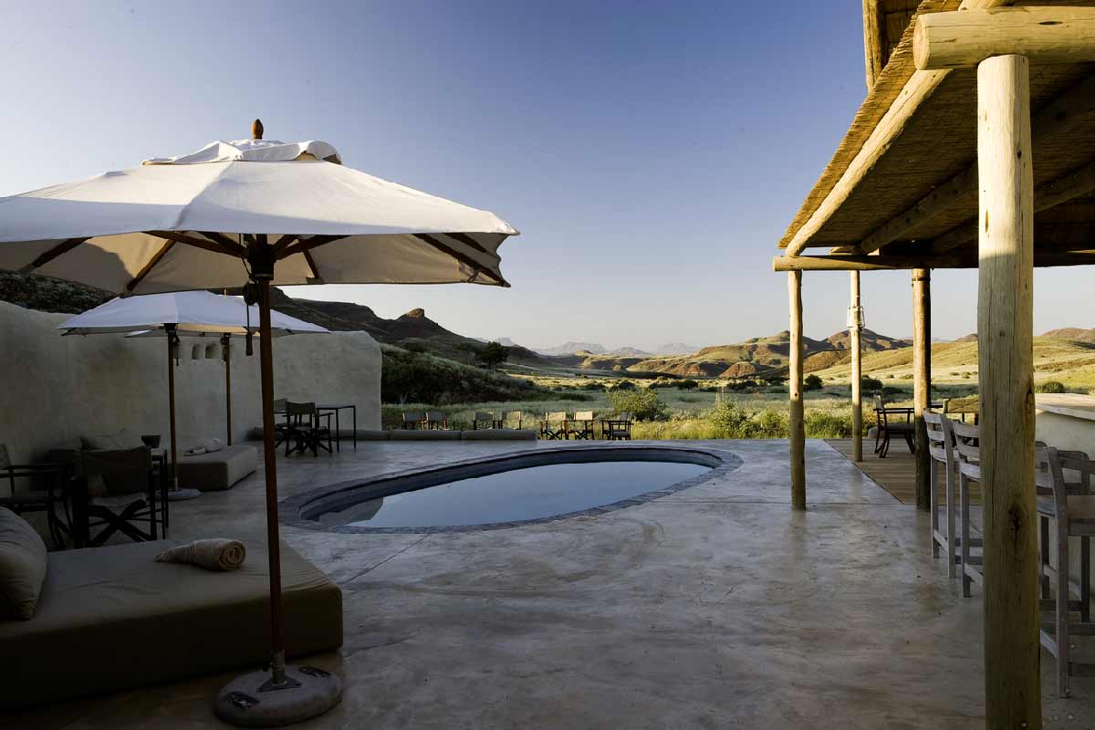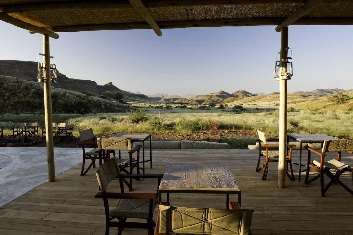 Le Damaraland Camp ne compte que 10 chambres sur plateformes en bois. La vue de la terrasse vaut le déplacement…
