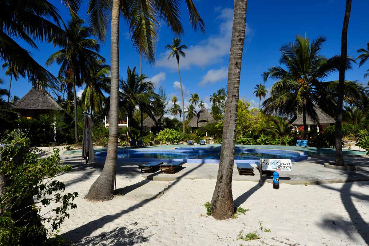 L’ECHO BEACH HOTEL est situé sur la plage de Bwejuu, sur la côte sud-est de l’île de Zanzibar. Il s’agit d’une belle plage calme. Aucun gros hôtel à proximité. Comme presque partout sur l’île, à marée basse, la barrière de corail retient l’eau à l’extérieur et son niveau près de la plage est trop bas pour que la baignade ne soit facile.