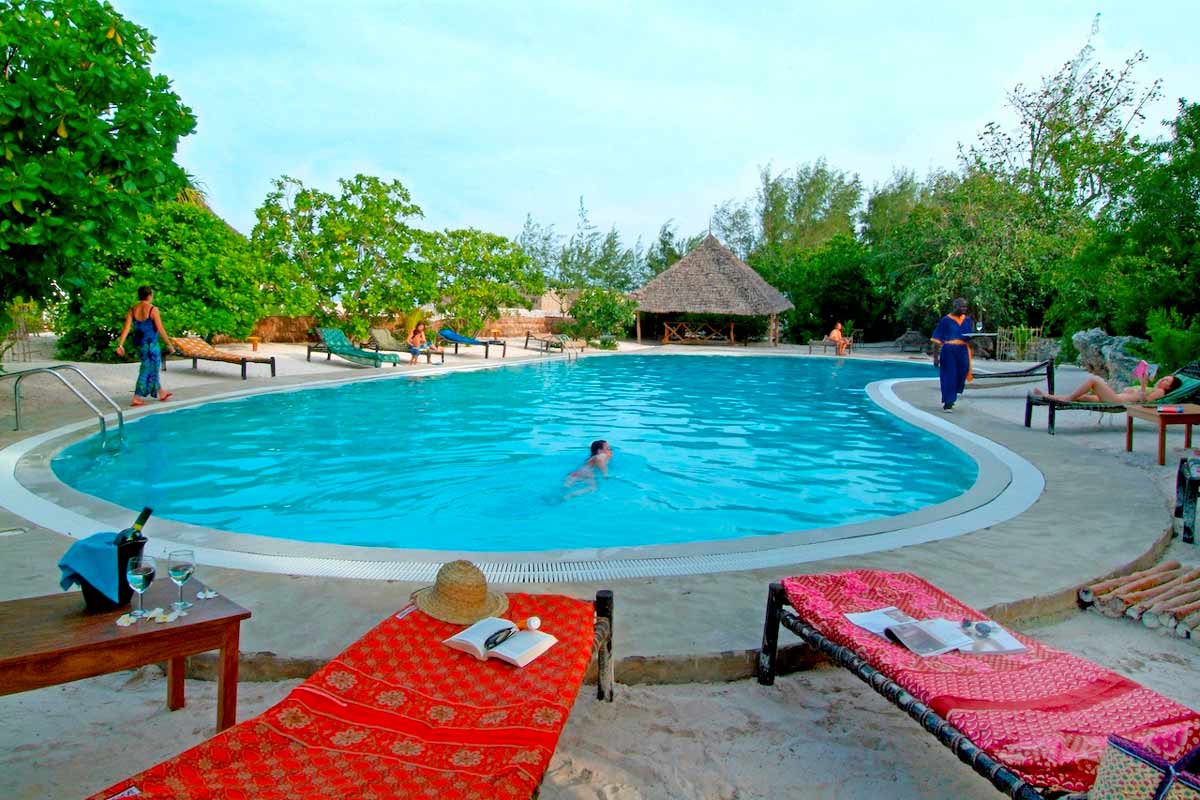 C’est un véritable petit paradis, de simplicité, d’isolement, de calme et de charme, situé le long d’une superbe plage de 6 km de sable blanc, bercé par la douce brise de l’océan et abrité par de grands palmiers. L’eau turquoise de sa plage vous séduira. À marée basse, comme presque partout sur l’île, la baignade n’est pas toujours aisée. Vous pourrez alors vous diriger vers la piscine située légèrement en retrait par rapport à la plage.