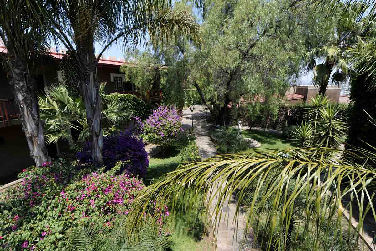 Les chambres entourent un jardin luxuriant et fleuri.