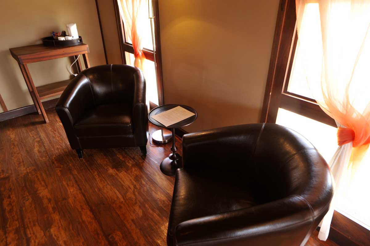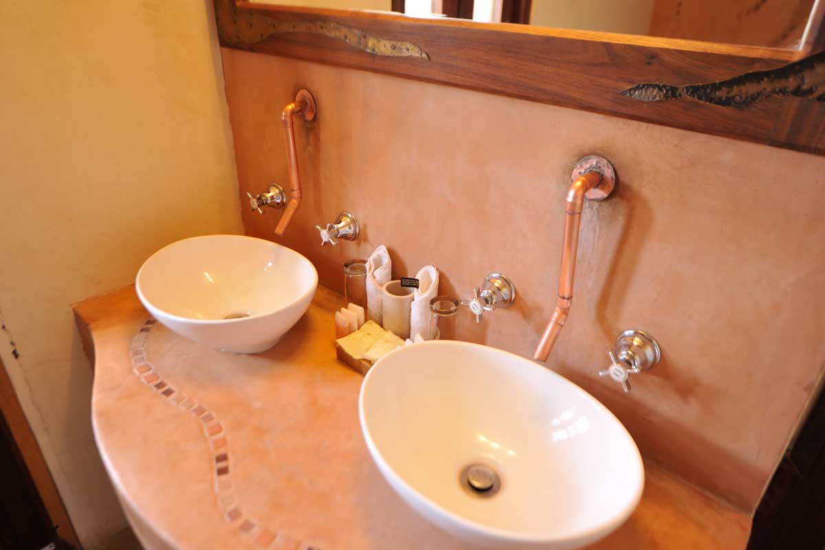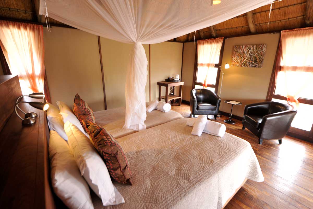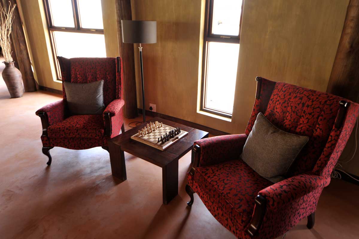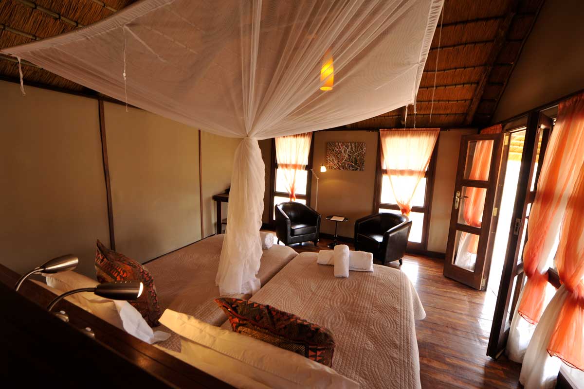 Les 12 chambres du HOODIA DESERT LODGE se répartissent de part et d’autre des parties communes. Elles offrent un bon niveau de confort : terrasse avec fauteuils, coin salon à l’intérieur avec fauteuils, climatisation, salle de bains avec double-vasques, douche intérieure et extérieure et même une baignoire extérieure…