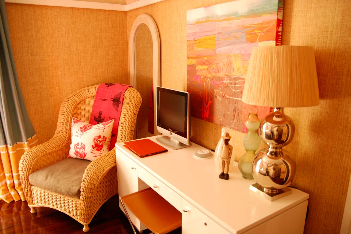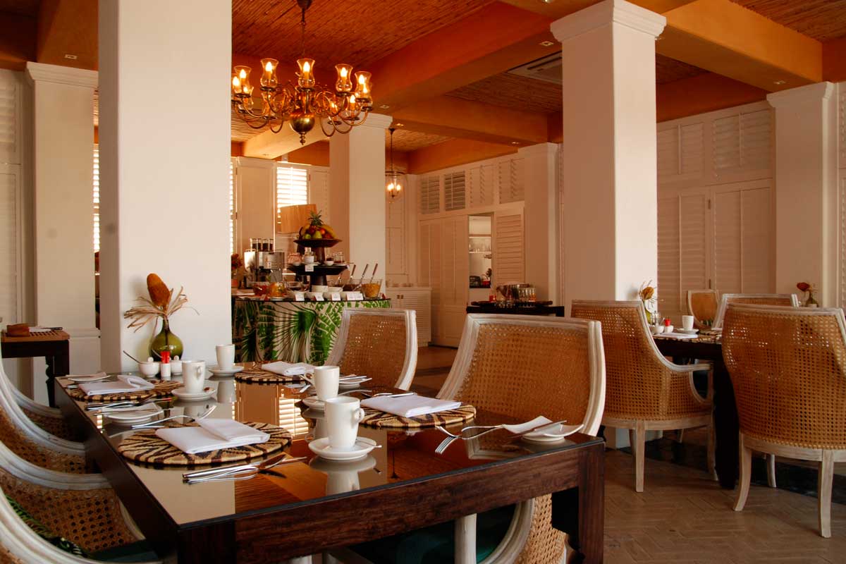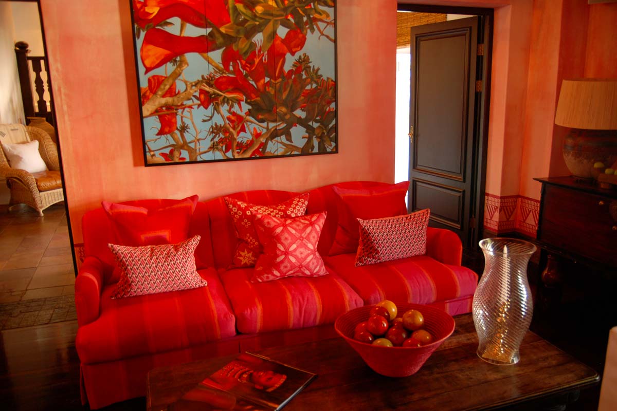 Le style colonial d’origine a été conservé mais il a été revisité et des touches de modernisme colorées égayent les grandes pièces qui constituent les parties communes.