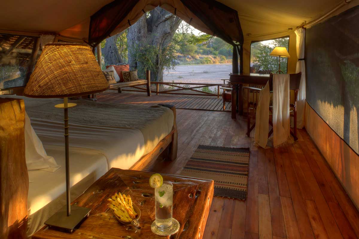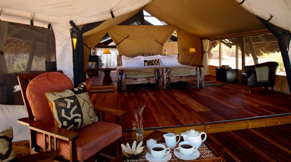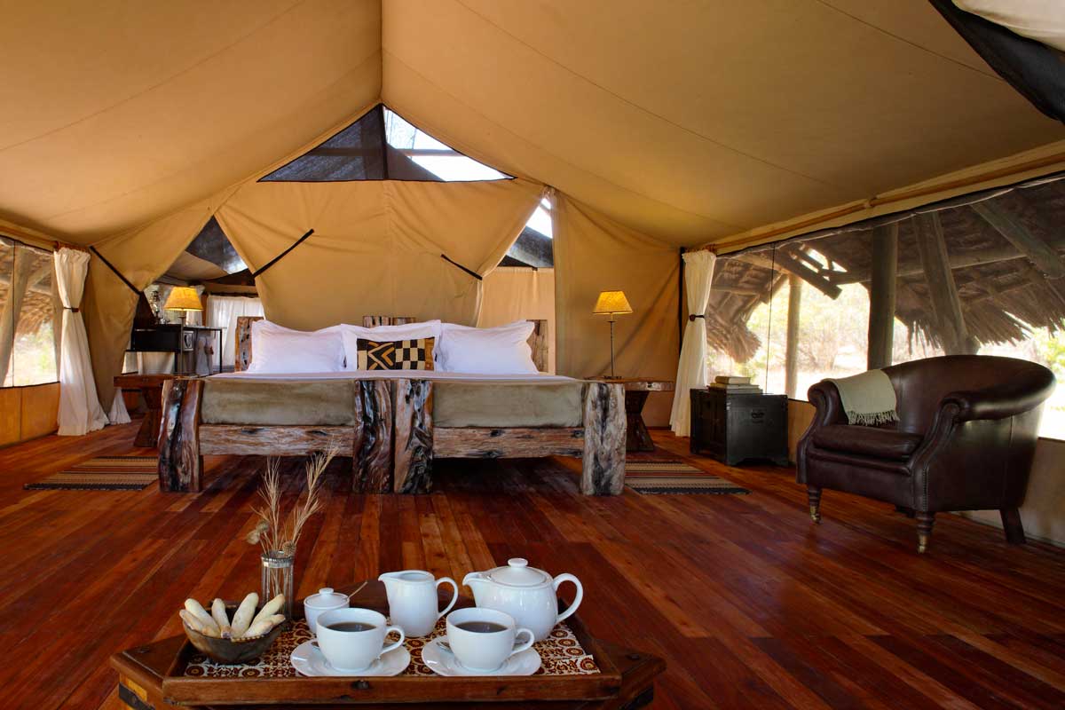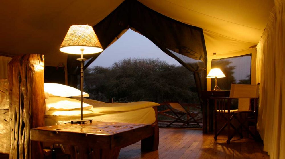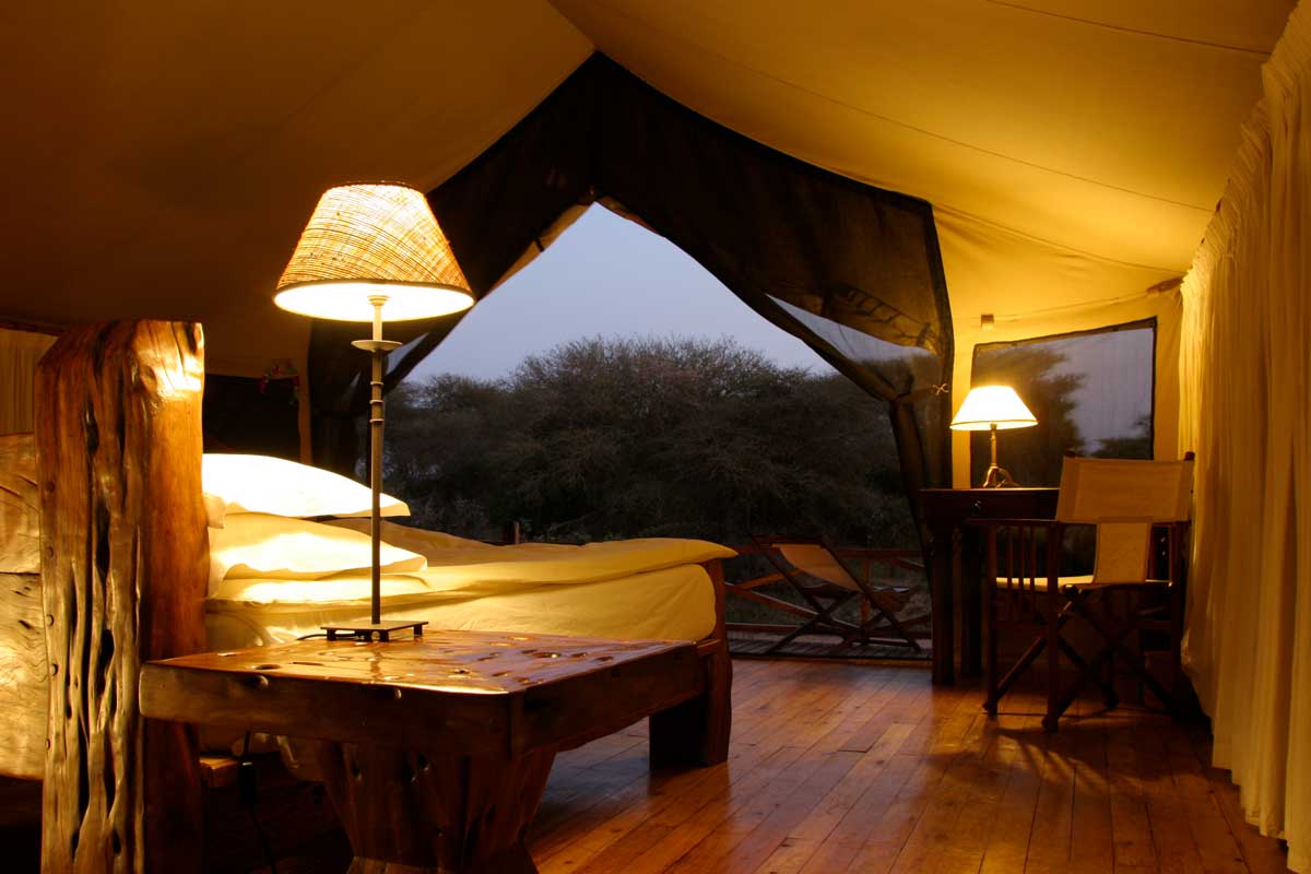 Les 8 tentes du JONGOMERO sont vastes et très confortables : véranda avec lit de repos et chaises longues, plancher en bois ciré, fauteuil en cuir, bureau, salle de bains avec 2 vasques, douche avec eau chaude…Elles sont espacées les unes des autres (de 30 à 40 m en moyenne).