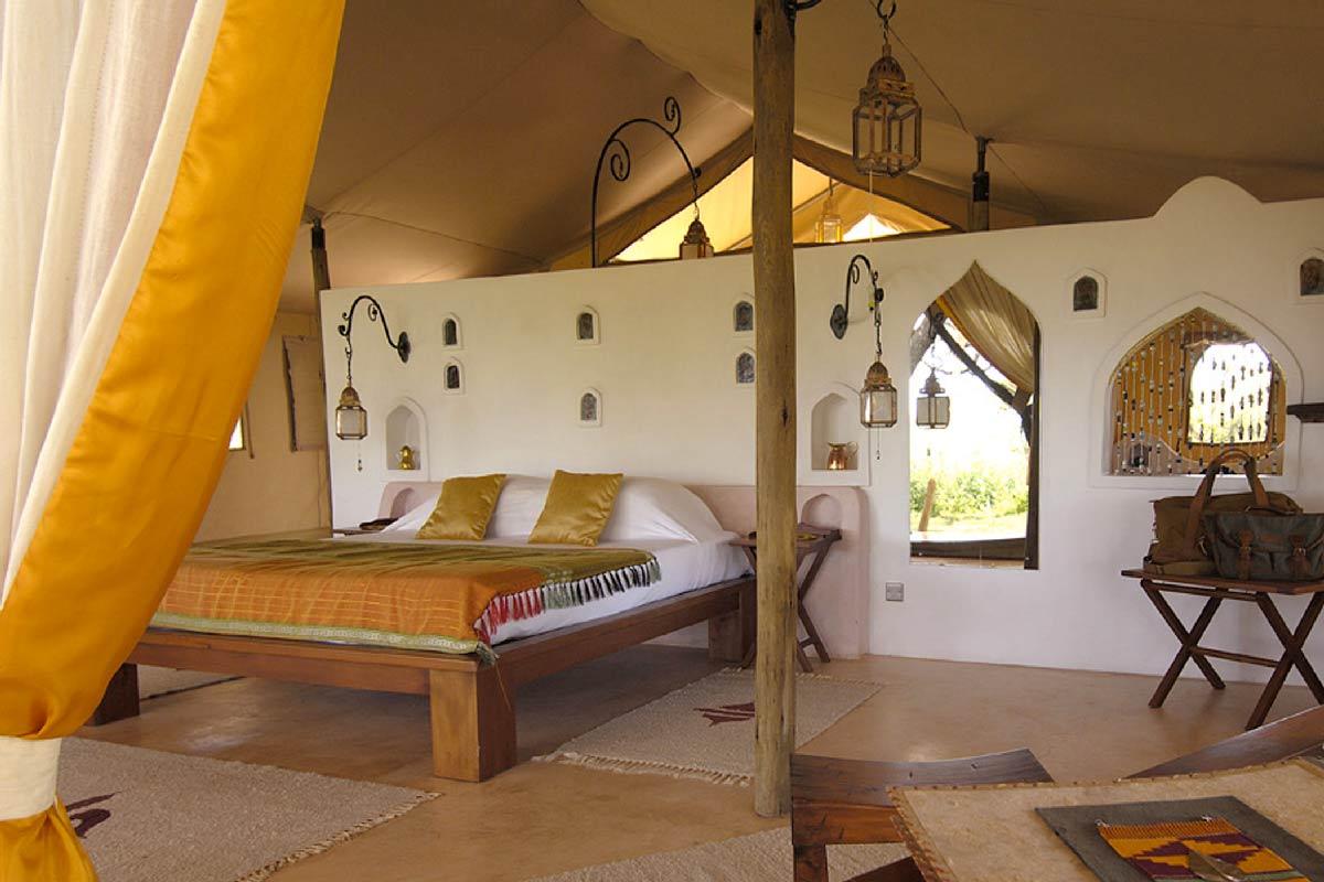 JOY’S CAMP offre un isolement, un charme et une décoration raffinée qui en font une étape de qualité, à l’écart de la « foule » de Samburu. Le camp fait face à de petits marécages, taches de verdure et de fraîcheur au milieu de ces terres arides du nord kenyan.