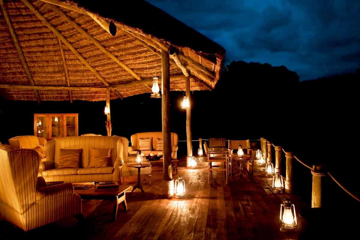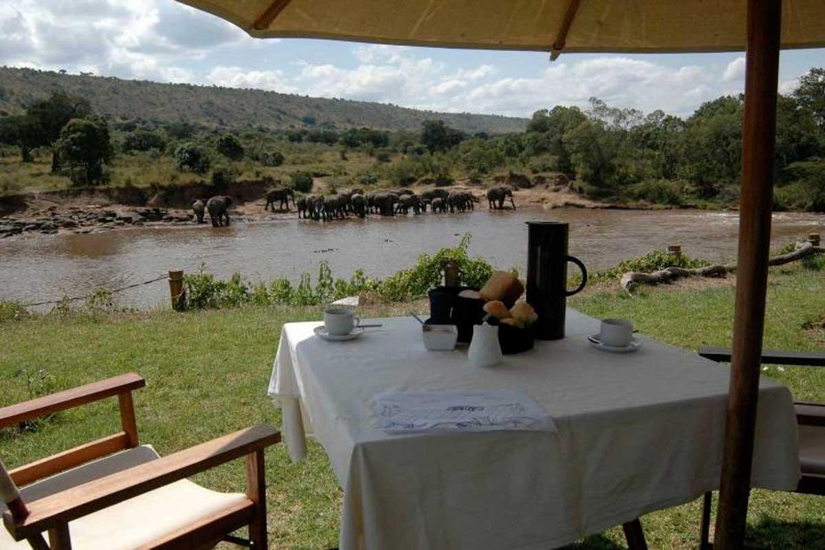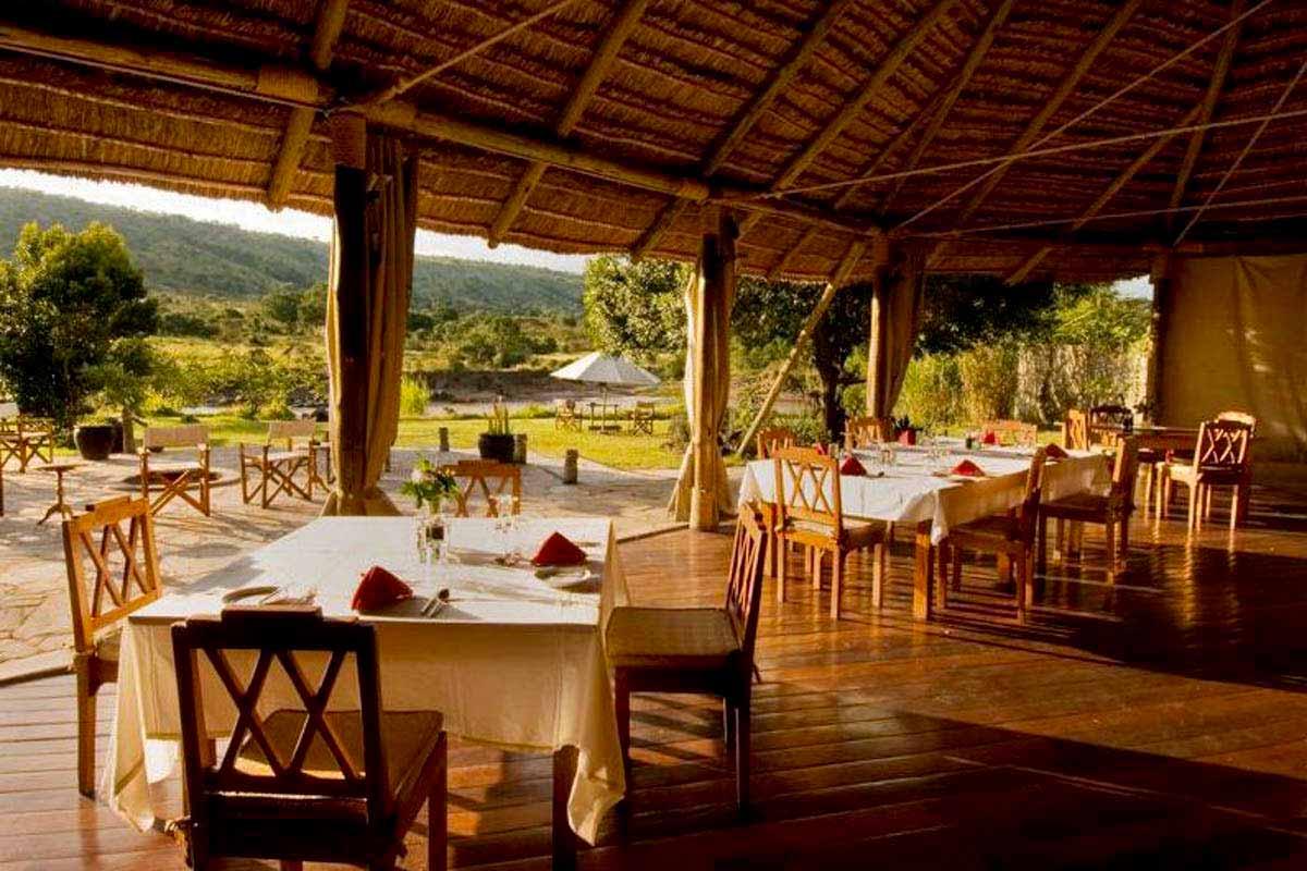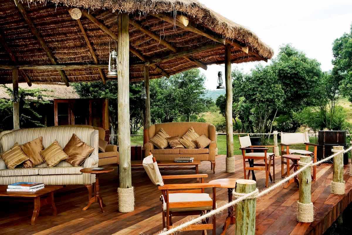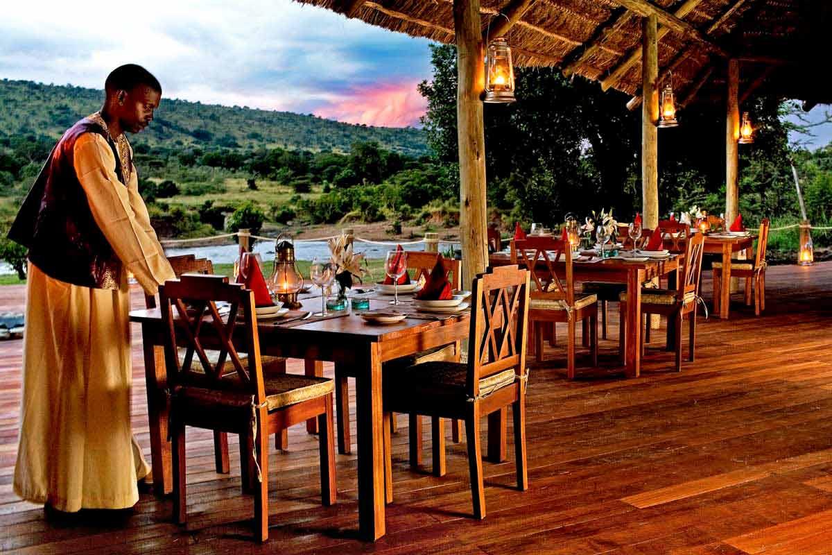 Les parties communes du KAREN BLIXEN CAMP se dressent sur des plateformes aux toits de makuti qui offrent une belle vue sur la rivière. Le restaurant, le bar et le salon offrent un bel espace.