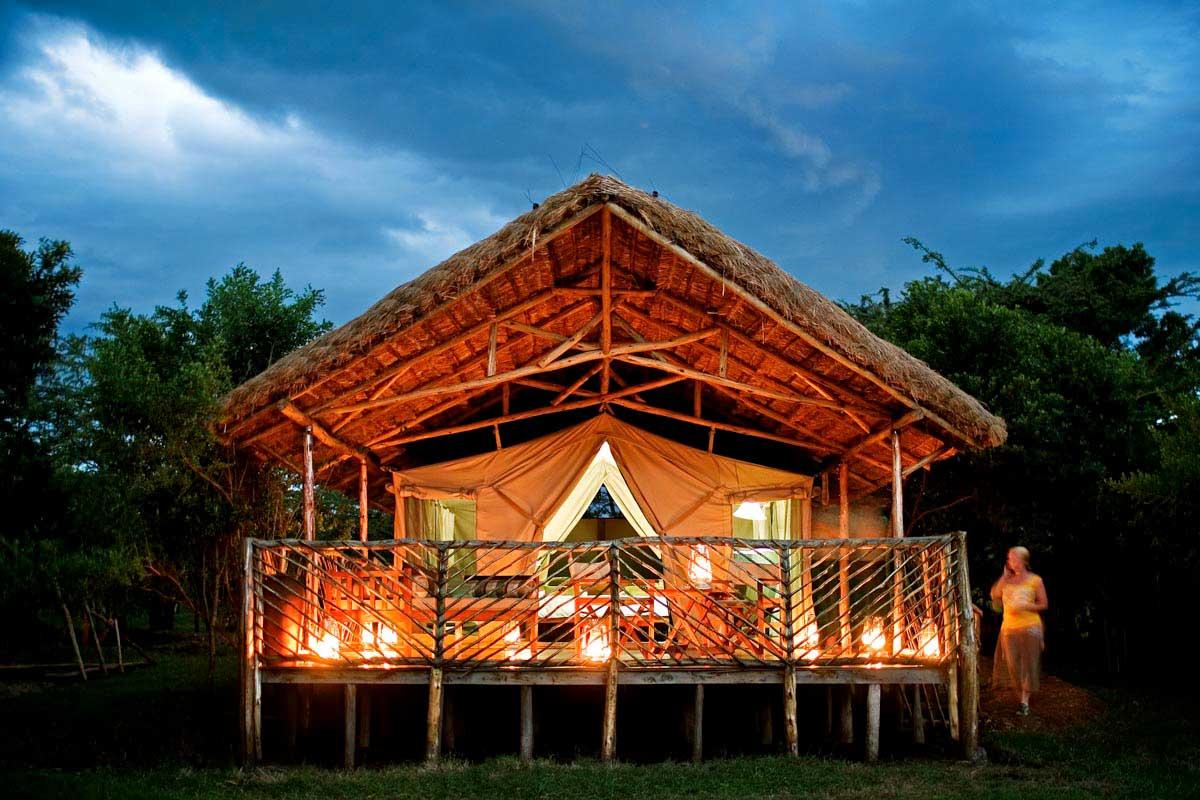 KAREN BLIXEN CAMP est situé sur les berges de la rivière Mara. elle accueille nombre d’hippopotames et de crocodiles et attire de nombreux autres mammifères qui viennent s’y abreuver.