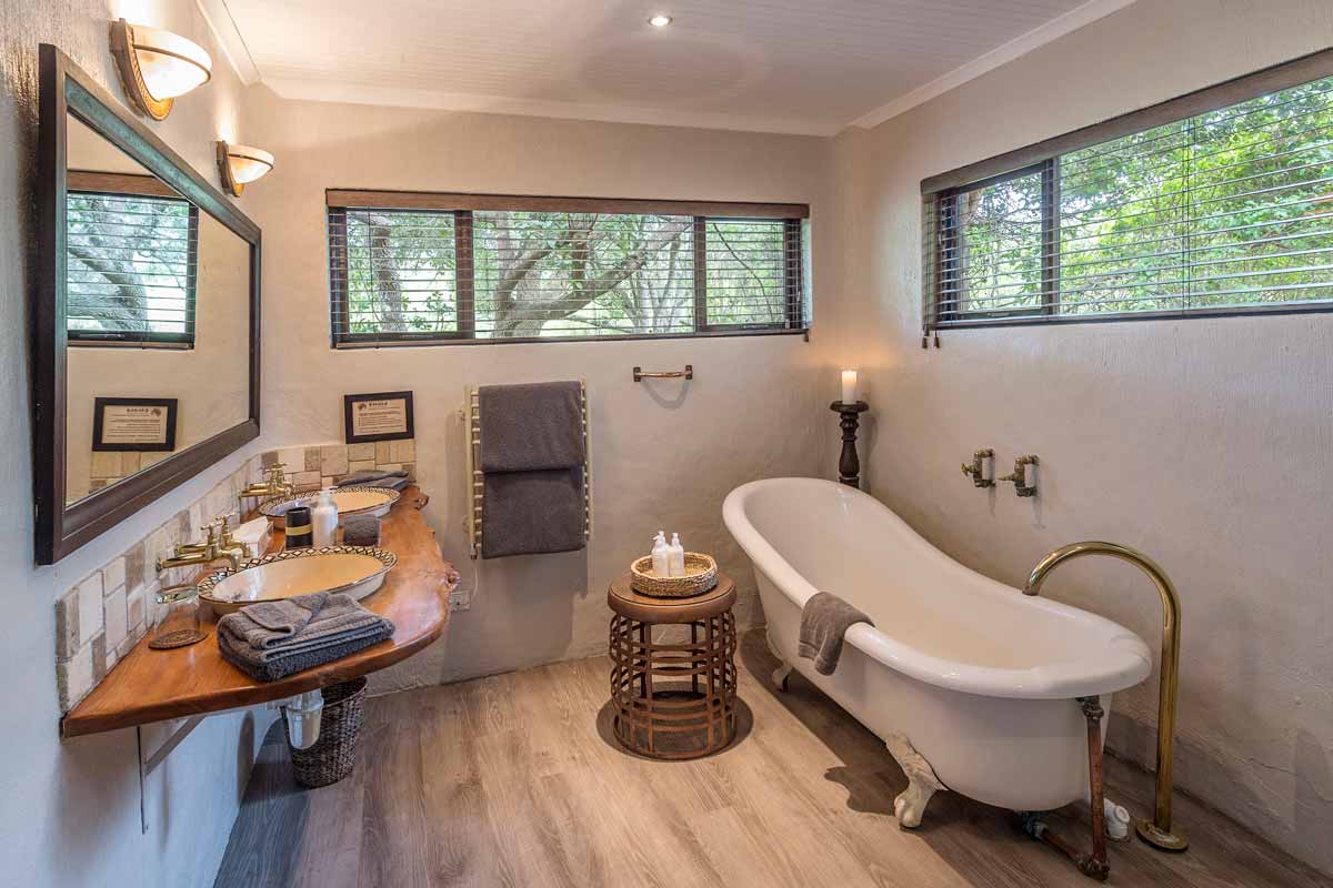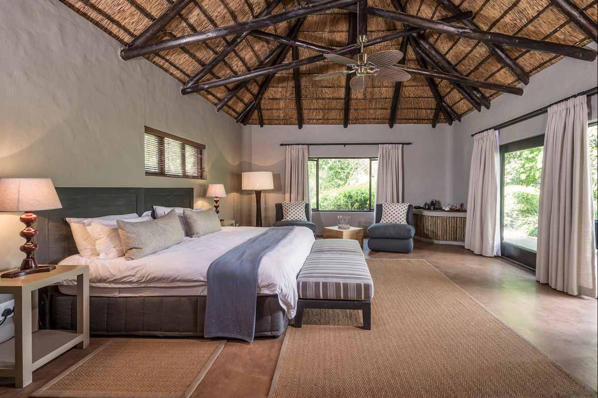 Le KARIEGA RIVER LODGE propose 10 grandes chambres au toit de chaume le long de la rivière Bushman. Les suites sont décorées avec soin. Les couleurs sont douces et apaisantes. Elles sont spacieuses et confortables.