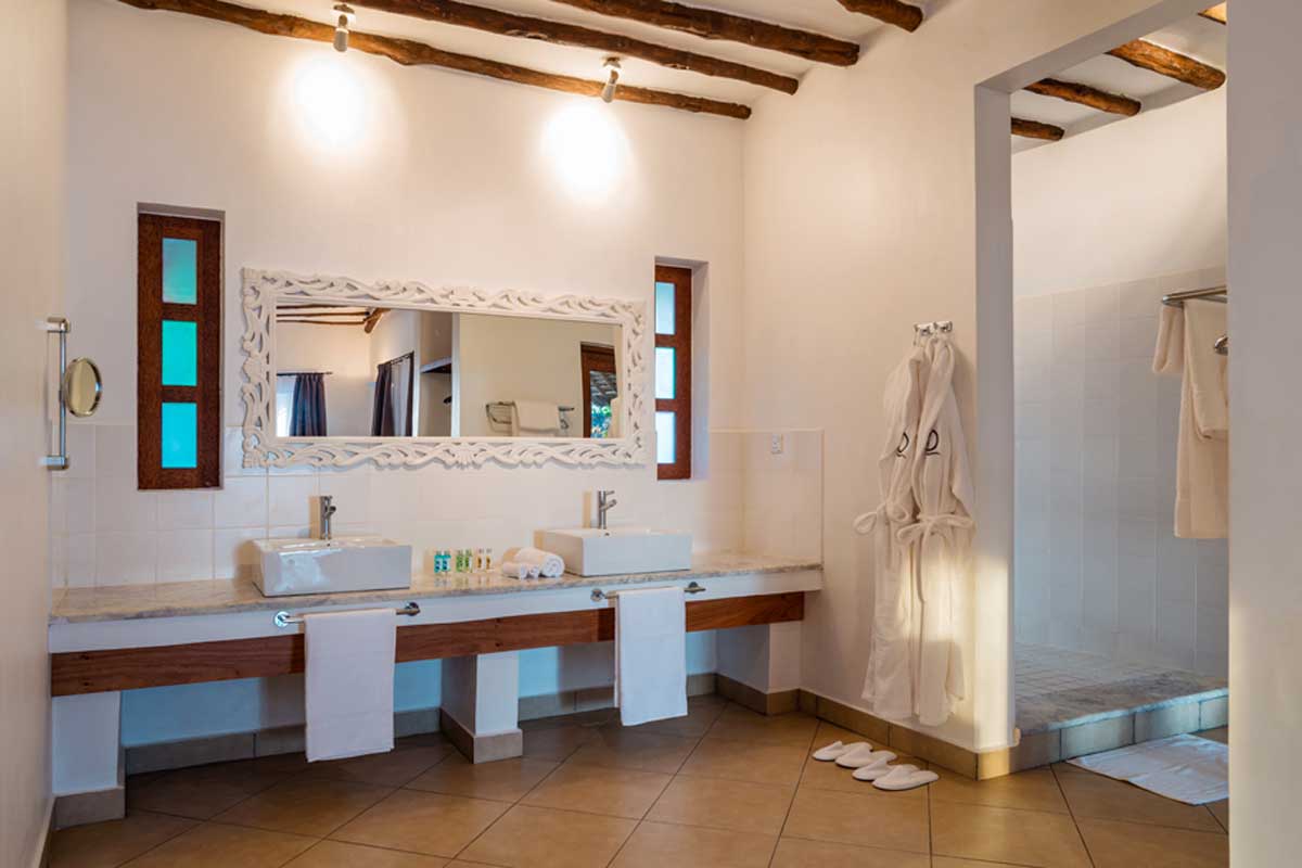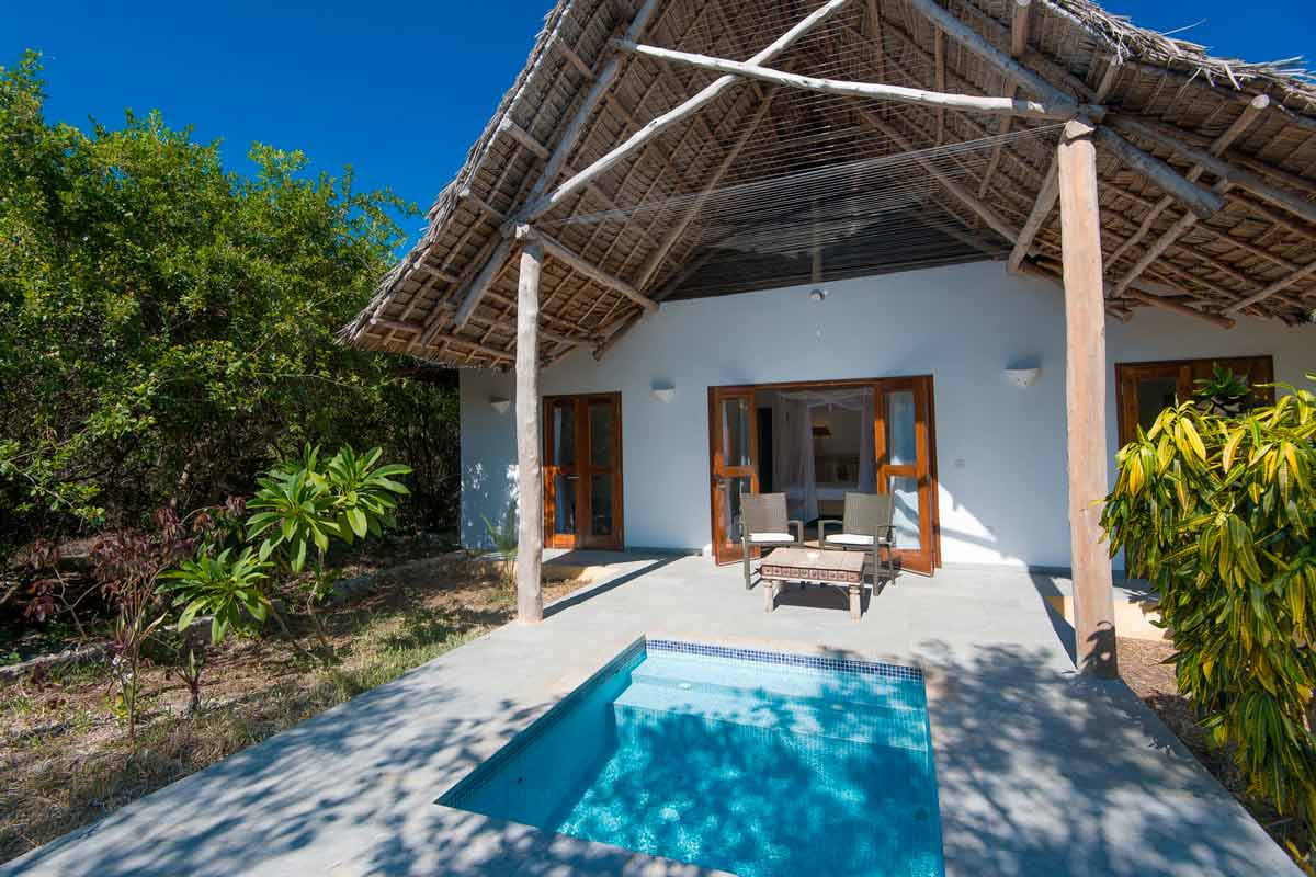Vastes, les villas offrent une décoration agréable, la climatisation, un coin salon, une belle salle de bains avec double vasque, douche, toilettes séparées, grande terrasse avec petite piscine privative…