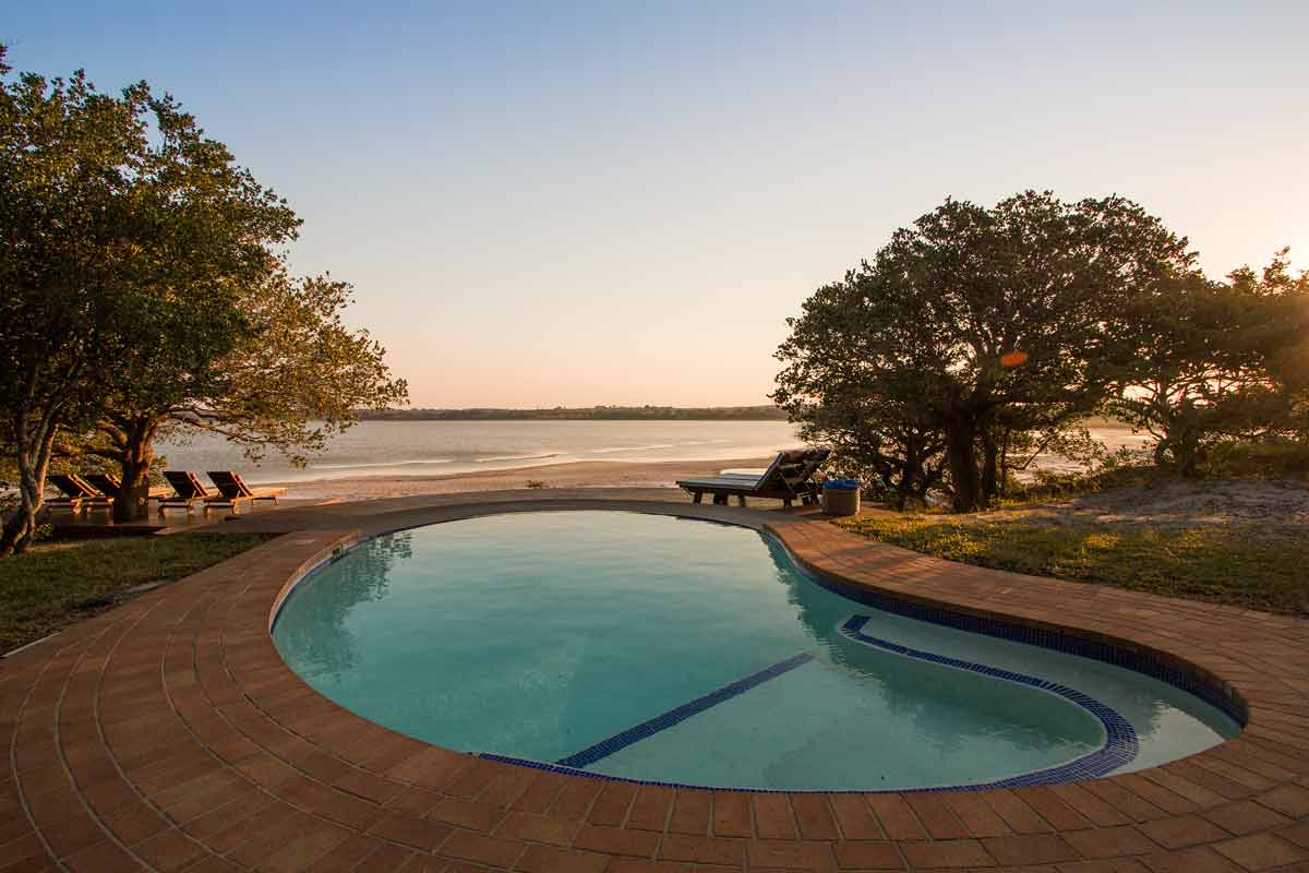 A l’ombre de superbes arbres, au cœur de la nature, se trouve KOSI FOREST LODGE. Le lodge se  trouve près du lac Shengeza au sein de la réserve naturelle d’iSimangaliso. Le lieu est préservé et offre dès les premières minutes un sentiment de détente et de bien-être. Du sable blanc tout autour du lodge, invite à se mettre de suite à l’aise les orteils plongeant dans le sable chaud. Ici, vous explorerez la nature comme nulle-part ailleurs. Le lodge est à environ 3h20 de route de l’aéroport de Richard’s Bay. Il s’agit d’un hébergement de petite capacité de 8 chambres uniquement. Les chambres au toit de chaume sont charmantes et dotées d’un joli espace extérieur qui comprend une baignoire et une douche.  L’arrivée au lodge se fait en 2 temps. Vous laissez votre véhicule dans la ville de Manguzi, puis un transfert en 4×4 est prévu pour les 20 minutes dernières qui vous mènent au lodge. Les transferts sont prévus à midi et à 15h. KOSI FOREST LODGE propose de nombreuses activités qu’apprécieront les amateurs de nature et de lieux préservés hors des sentiers battus : des sorties en bateau pour découvrir les lacs, l’observation de centaines d’oiseaux, du snorkeling à l’embouchure de la rivière Kosi, des promenades en forêt. Certaines activités nécessitent de régler un supplément sur place. Vous logerez ici en pension complète. Une belle piscine face au lac est également à votre disposition.