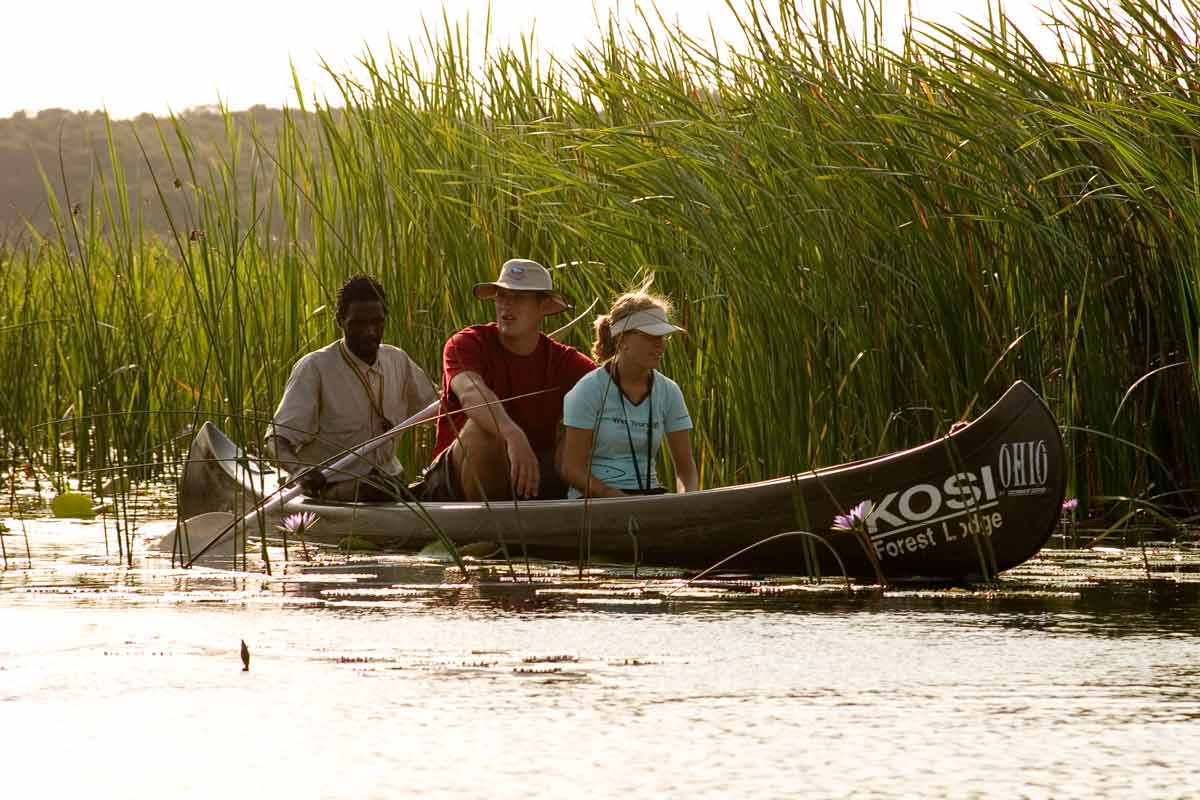 KOSI FOREST LODGE, est un lodge paisible situé dans un environnement forestier aux abords du lac Shengeza. Le lodge, dans environnement sauvage et isolé, permet une découverte originale et hors des sentiers battus de cette partie du Kwazulu-Natal. Cet écosystème unique se parcourt en canoé ou en bateau pour explorer la région, les différents lacs mais également à pied, grâce à des marches guidées très pédagogiques. La réserve compte plus de 400 espèces d’oiseaux : cigognes, hérons, pélicans, flamants roses pour ne citer qu’eux ainsi que des hippopotames. De nombreuses activités vous seront proposées lors de votre séjour à KOSI FOREST LODGE : des balades en bateaux sur les lacs, pêche, snorkeling, balades en forêt…