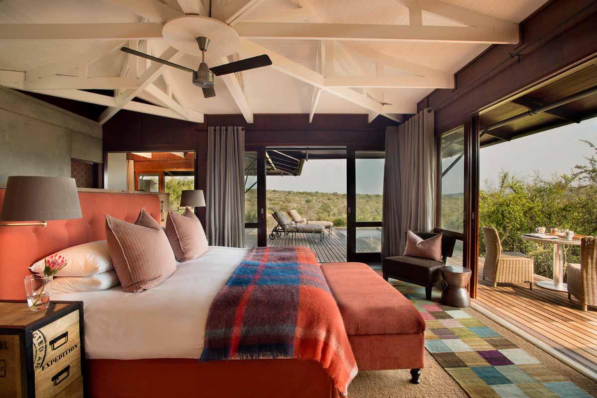 KWANDWE ECCA LODGE propose 6 suites (dont 3 suites famille) très spacieuses, décorées chacune de façon différente, avec un code couleurs qui rappelle les couleurs chaudes et vibrantes de l’Afrique.
