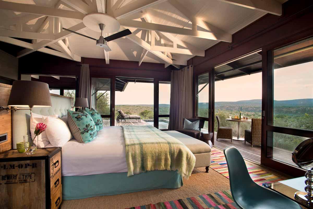 KWANDWE ECCA LODGE, est un lodge de toute petite capacité construit non loin de Port Elizabeth, sur la réserve privée de Kwandwe. C’est un lieu calme et intimiste qui invite à une expérience de safari en toute intimité, au cœur d’une nature verdoyante. C’est un lodge agréable en couple ou en famille. La réserve privée de Kwandwe est un véritable éden où vous pourrez observer les célèbres Big Five (buffles, éléphants, rhinocéros, lions et léopards) mais aussi de nombreuses espèces d’oiseaux, des girafes et des antilopes.