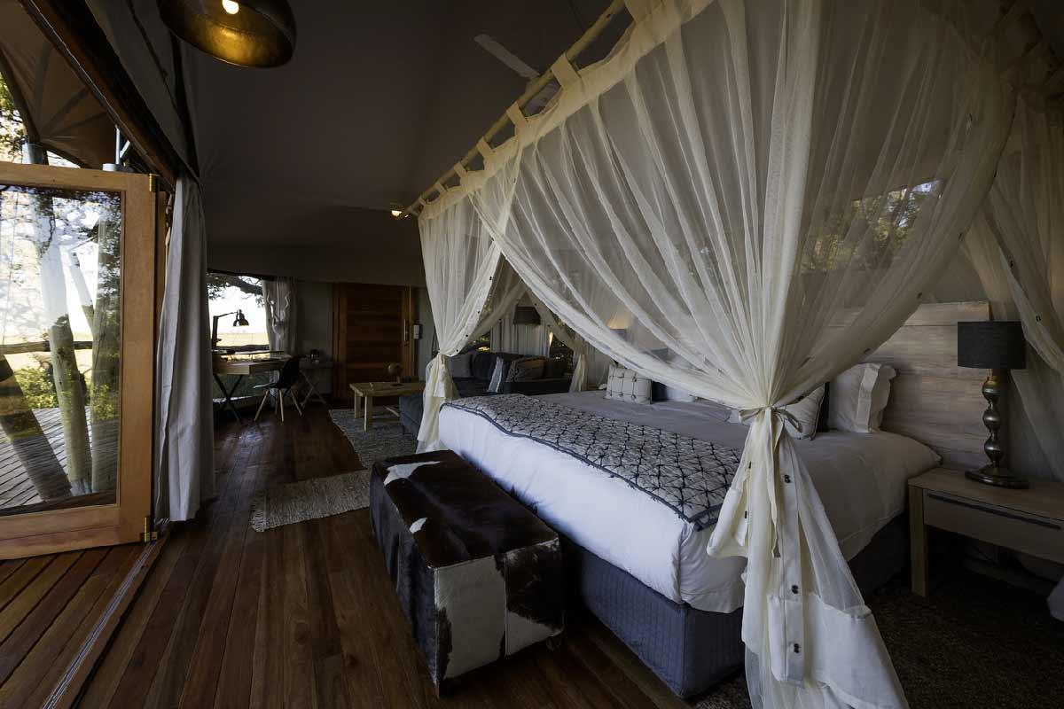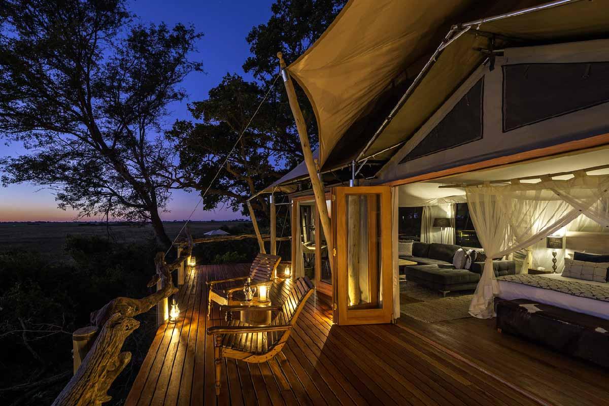 KWETSANI CAMP se situe sur une île dans la concession privée de Jao qui s’étend dans la partie nord-ouest du delta de l’Okavango, sur plus de 60 000 hectares. Seuls 4 camps sont répartis sur ce vaste territoire privatif. Comme ils n’accueillent, au total, pas plus de 48 personnes, vous disposerez d’environ 1 250 hectares par personne… Un ratio exceptionnel qui permet d’éviter de croiser beaucoup de monde lors de vos activités.