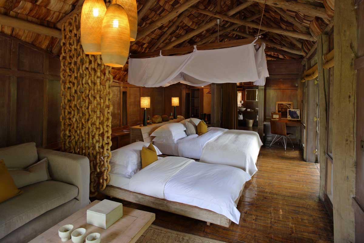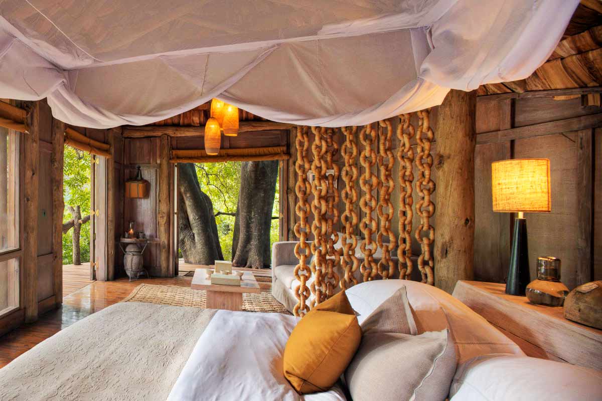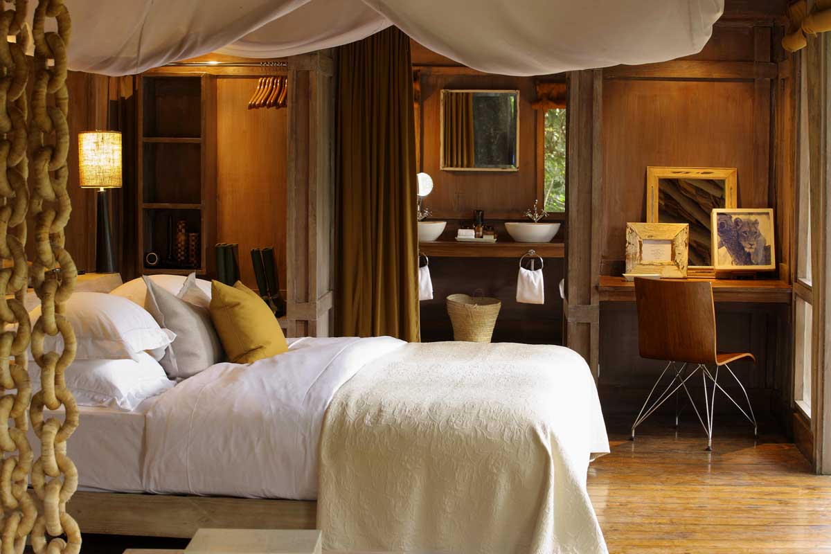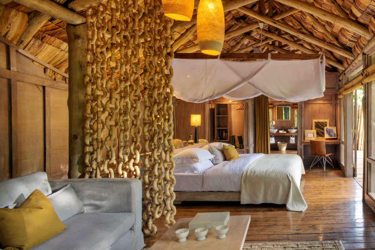 Les 10 chambres du LAKE MANYARA TREE LODGE offrent une décoration inspirée, moderne sans excès : tons chauds, du bois, de la feuille de palme, larges baies vitrées…