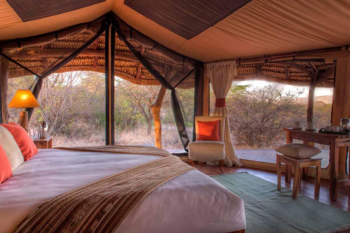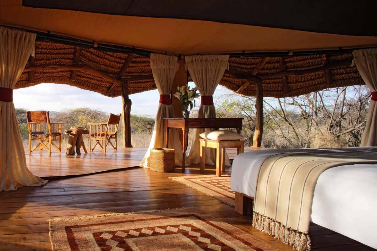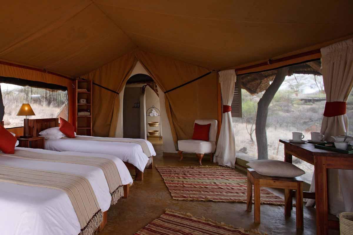Lewa Safari Camp ne compte que 12 tentes dont 1 familiale (composée de 2 tentes dont 1 avec des lits individuels). Spacieuses, elles offrent un bon confort : toit de chaume, terrasse, coin bureau, grande salle de bains… Certaines des tentes peuvent accueillir un enfant de moins de 16 ans dans un lit supplémentaire.