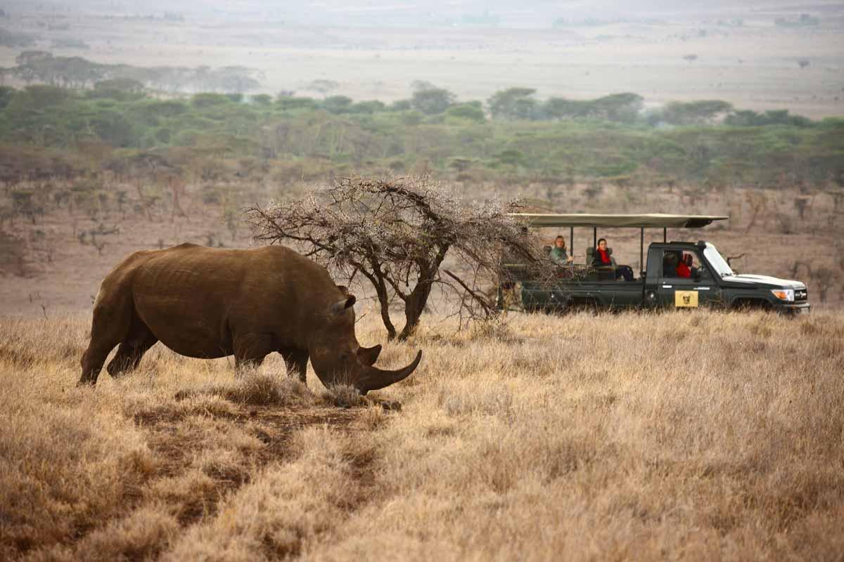 Lewa Safari Camp profite du programme de sauvegarde des rhinocéros de Lewa qui ont disparu de très nombreuses réserves du Kenya.