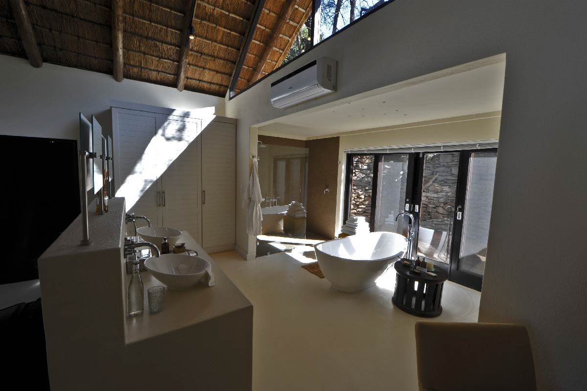 LION SANDS RIVER LODGE propose 20 chambres disséminées dans la nature. D’une taille confortable, elles offrent une décoration moderne. Terrasse, climatisation, téléphone, grande salle de bains douche intérieur et extérieure, baignoire…