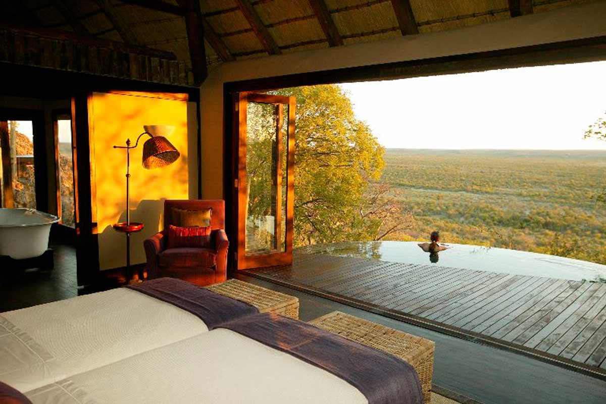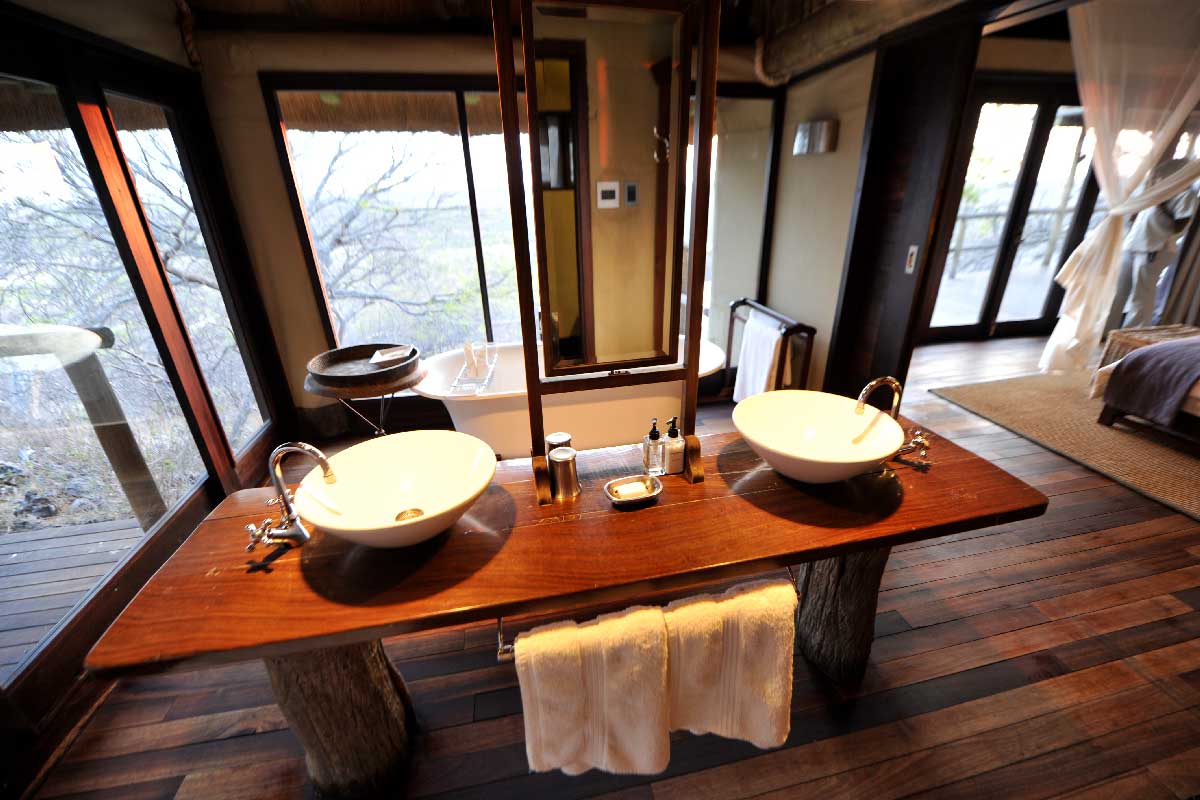 LITTLE ONGAVA ne compte que 3 immenses et luxueuses suites : terrasse avec petite piscine privative, grand salon avec plusieurs fauteuils et cheminée, lit faisant face à une baie vitrée, immense dressing, grande salle de bains avec baignoire, double-vasques, douche intérieure et extérieure…