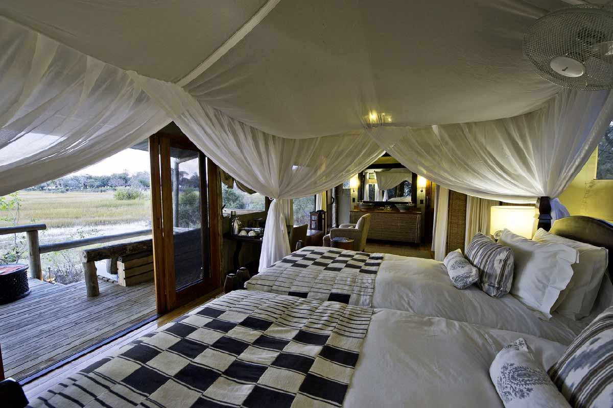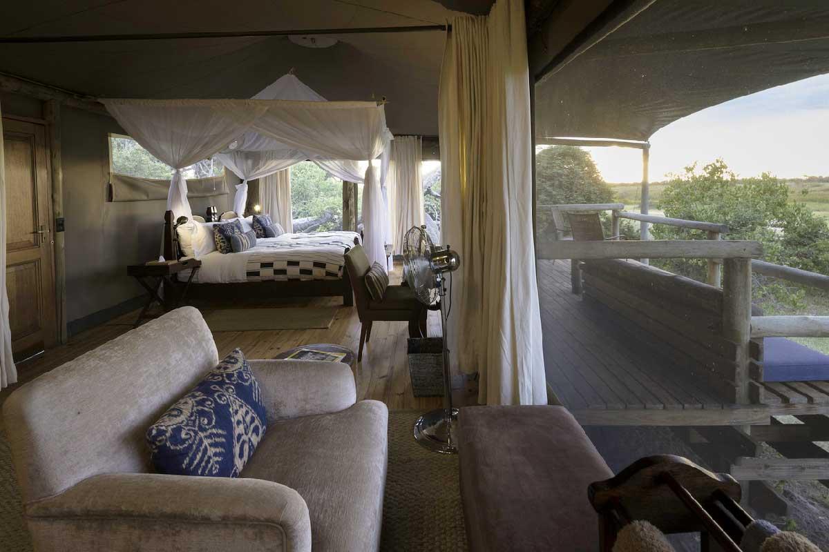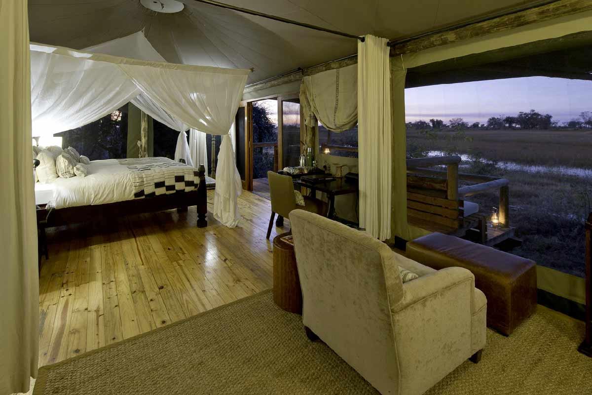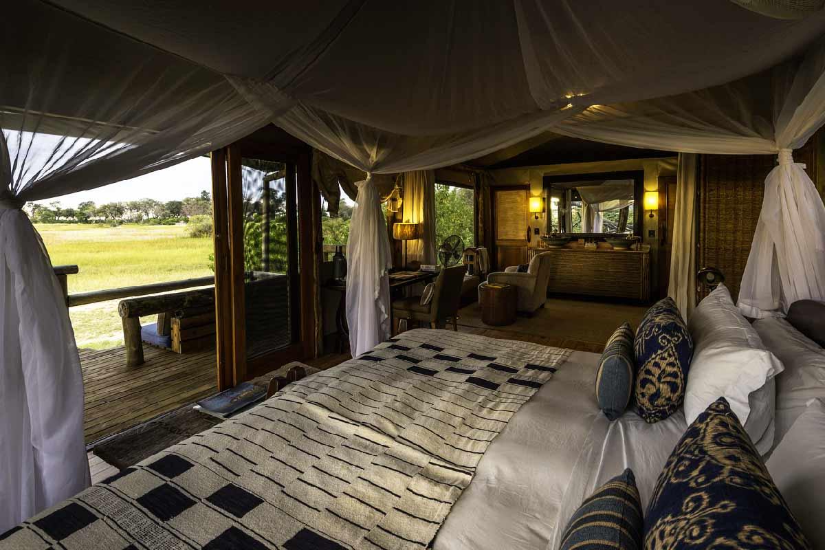 LITTLE VUMBURA CAMP ne compte que 6 tentes très agréables qui mélangent une décoration assez moderne au classicisme de la toile kaki. Vous apprécierez le grand lit à baldaquin et moustiquaire, la belle terrasse faisant face aux canaux…