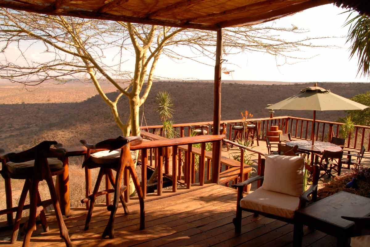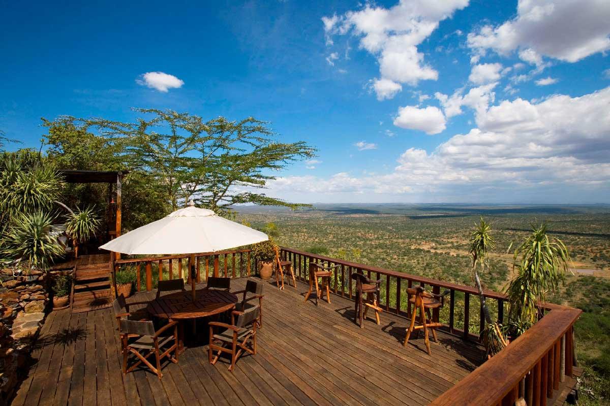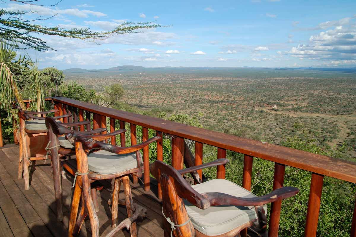 LOISABA se dresse sur un escarpement qui domine un point d’eau. La vue est époustouflante! Digne de celle du Cratère du Ngorongoro, en Tanzanie, l’affluence touristique en moins!