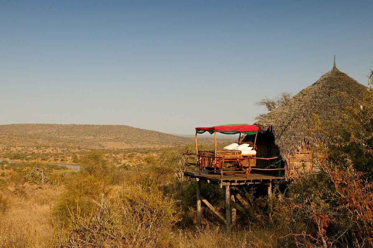 Vous pouvez également préférer les incroyables « star beds » : 2 camps isolés (Kiboko et Koija), situés à proximité du lodge (à respectivement 20 et 30 minutes) qui comptent 3 chambres chacun. Il s’agit de plateformes sur pilotis avec une grande terrasse. L’accès s’effectue par une escalier en bois et par une sorte de trappe que vous fermerez une fois dans votre « chambre ».