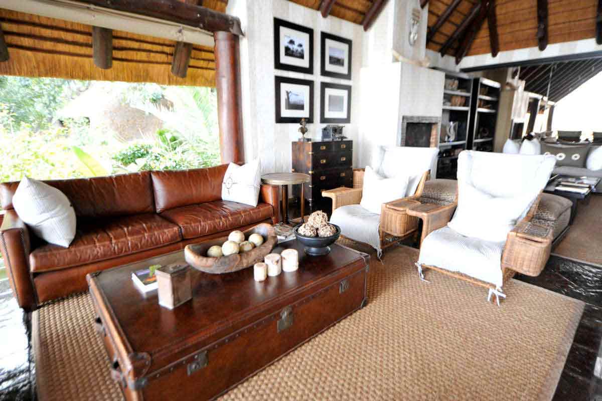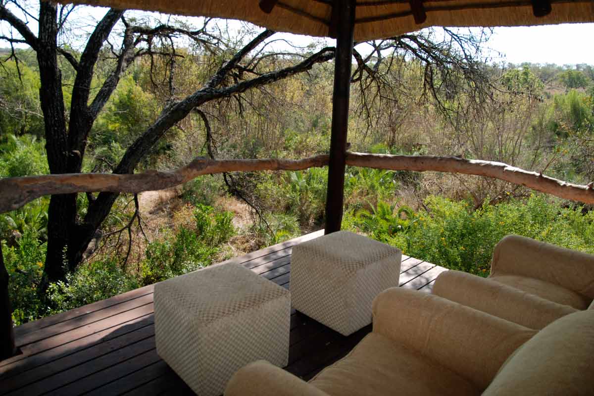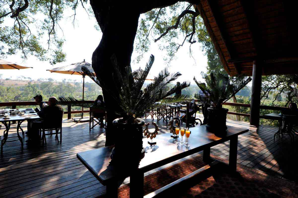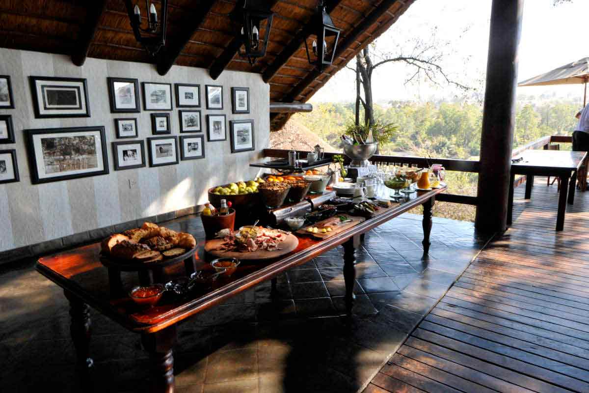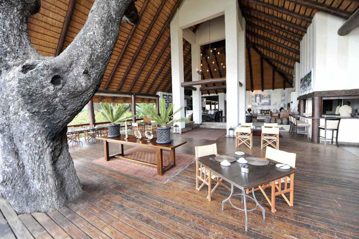 LONDOLOZI VARTY CAMP offre des parties communes très vastes. elles se prolongent par une immense terrasse qui surplombe le lit de la Sand River. Celle-ci attirent une faune abondante.