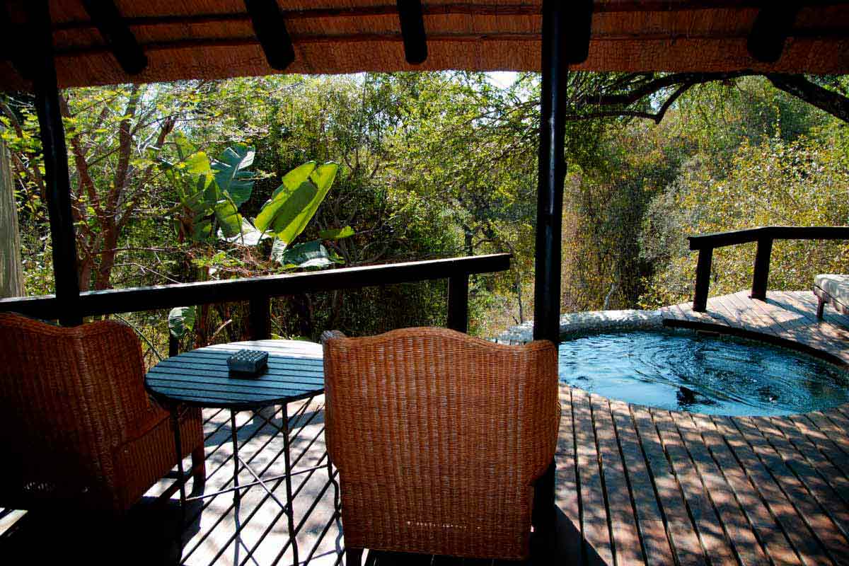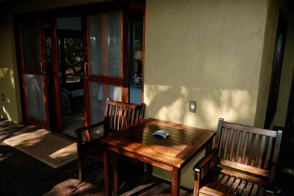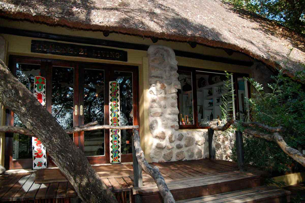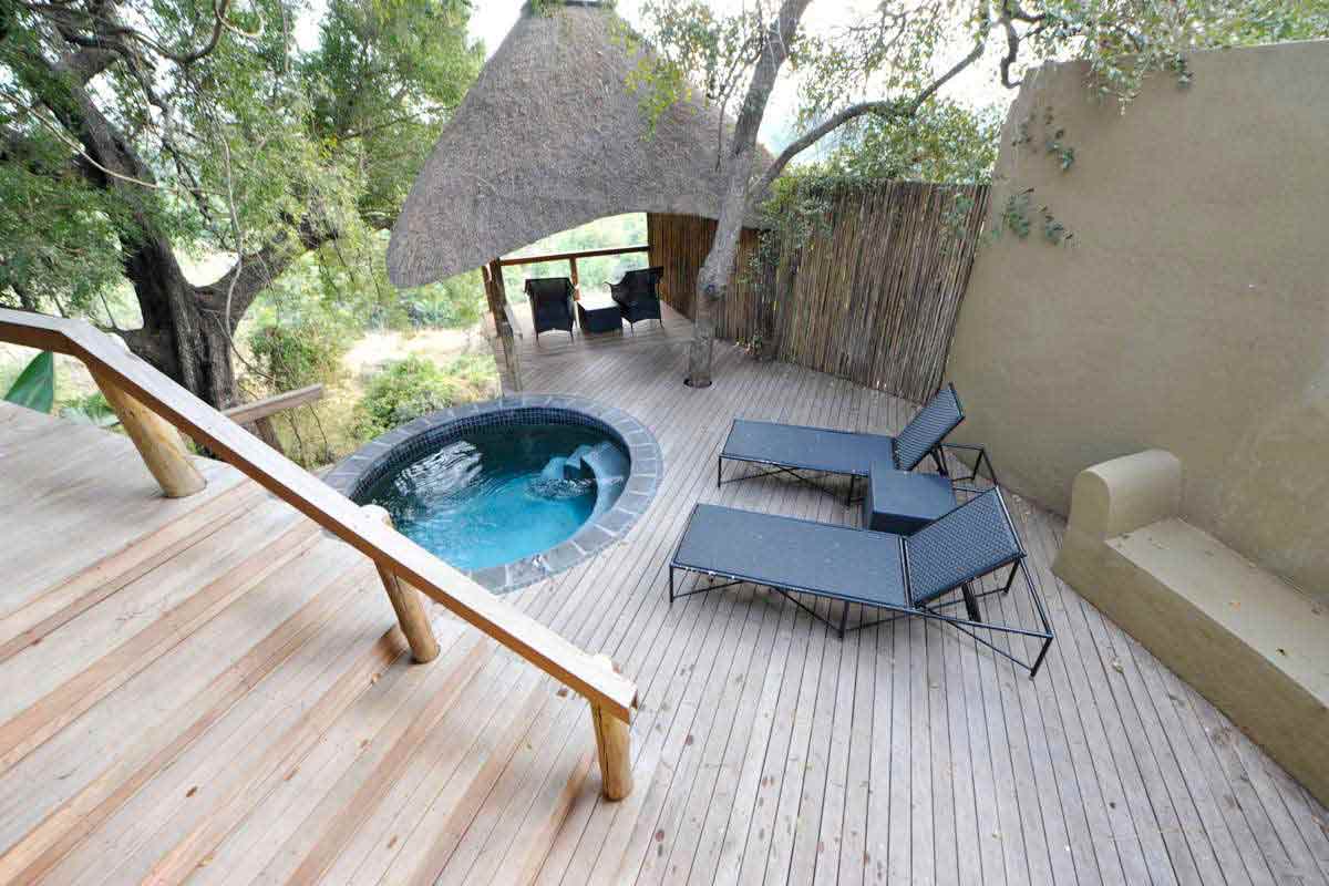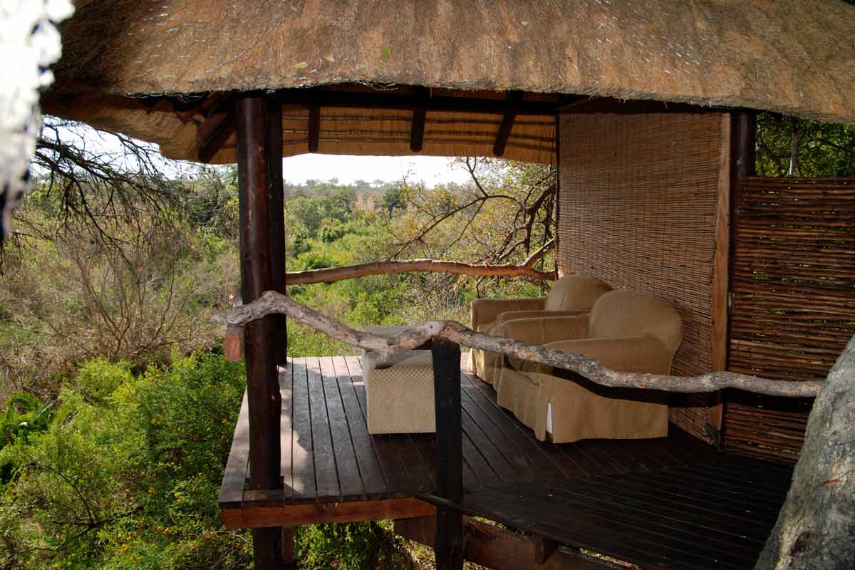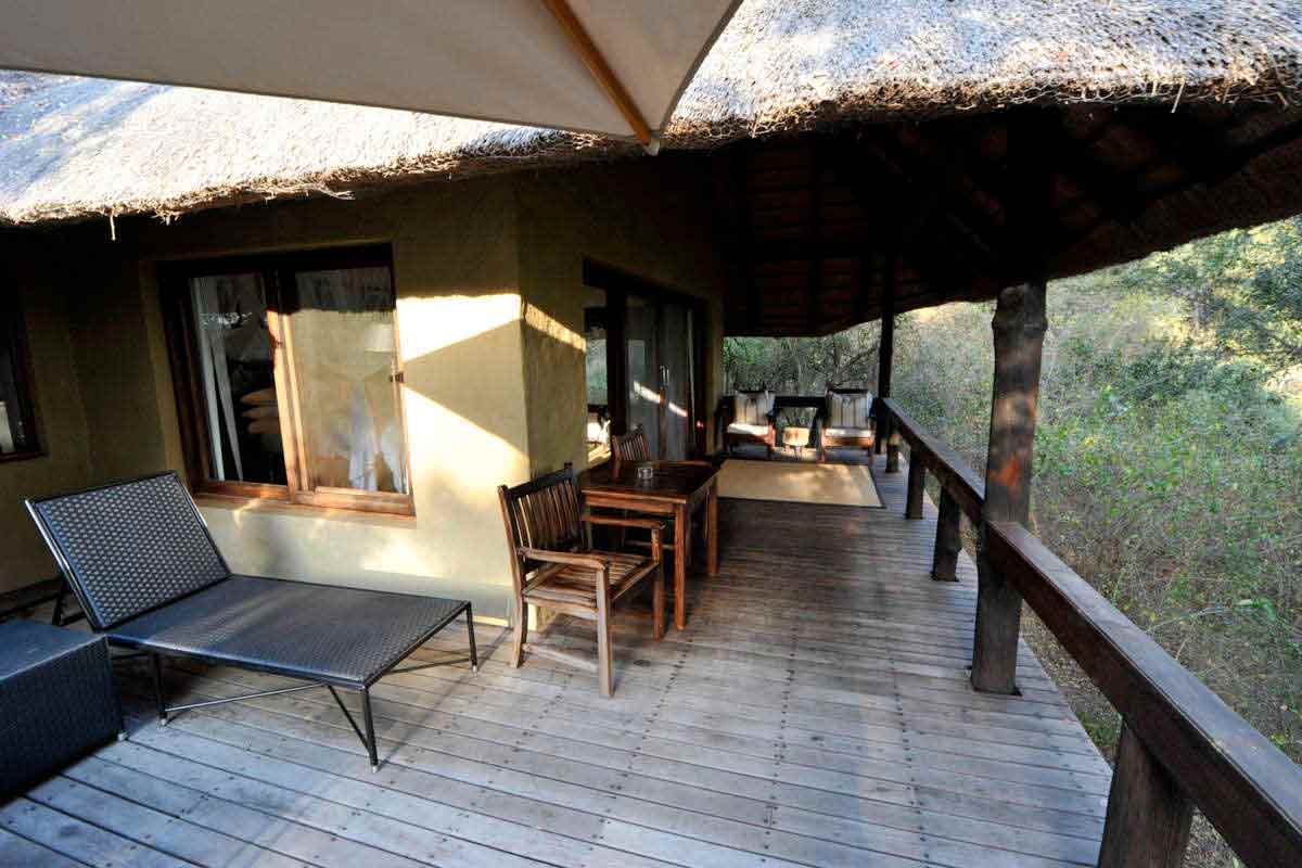 LONDOLOZI VARTY CAMP offre des parties communes très vastes. elles se prolongent par une immense terrasse qui surplombe le lit de la Sand River. Celle-ci attirent une faune abondante.