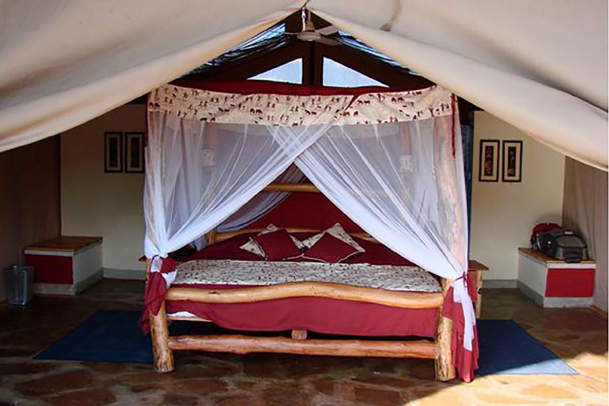 MAN EATERS CAMP propose 30 vastes tentes. Elles offrent une agréable vue sur la rivière Tsavo. Elles sont situées sur des structures « en dur » avec un sol en pierre et offrent une terrasse et des installation fort confortables (fauteuils sur la terrasse, lit avec moustiquaire, coin bureau, salle d’eau…). Les tentes sont recouvertes de toits en makuti qui les protègent de la chaleur.