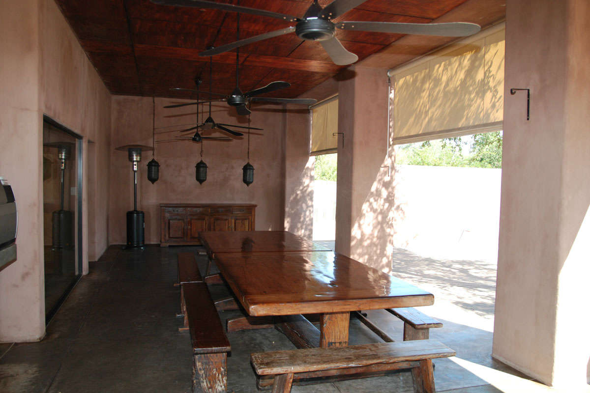 Une grande terrasse, couverte, où sont pris les repas, sur de grandes tables pouvant accueillir jusqu’à 8 convives, à la manière des chambres d’hôtes.