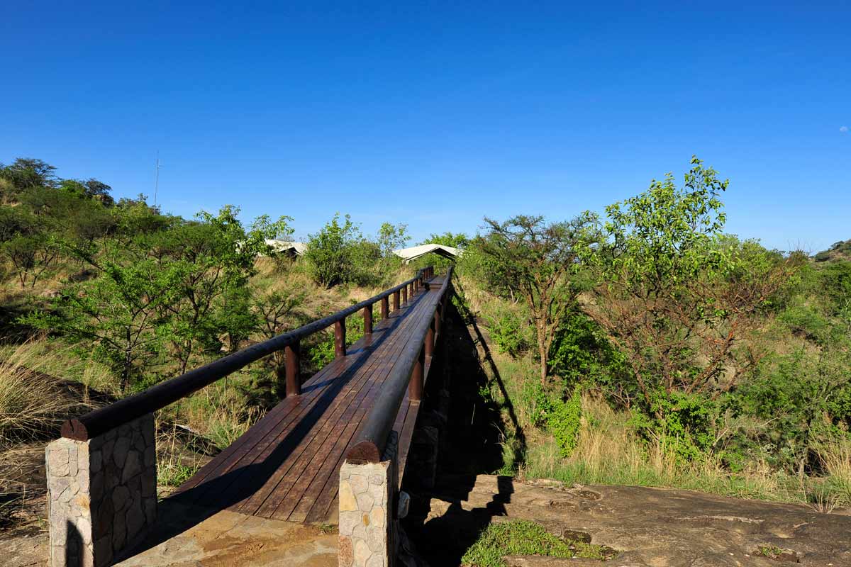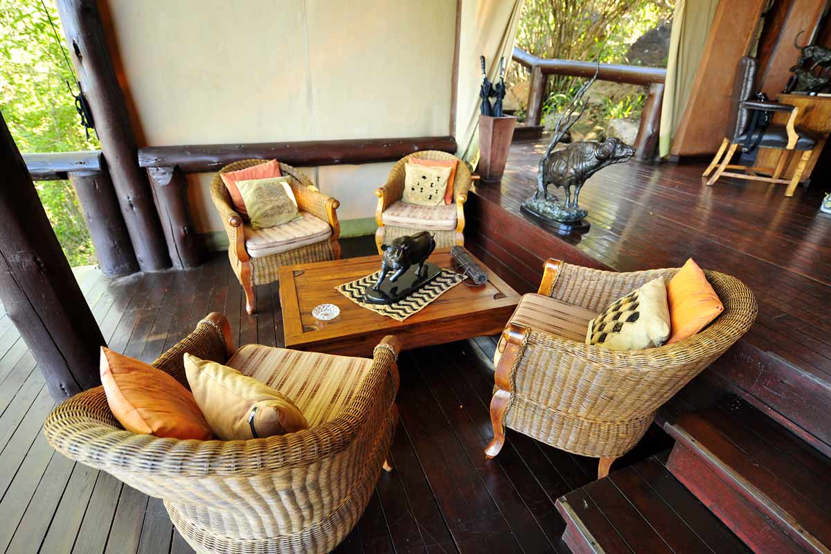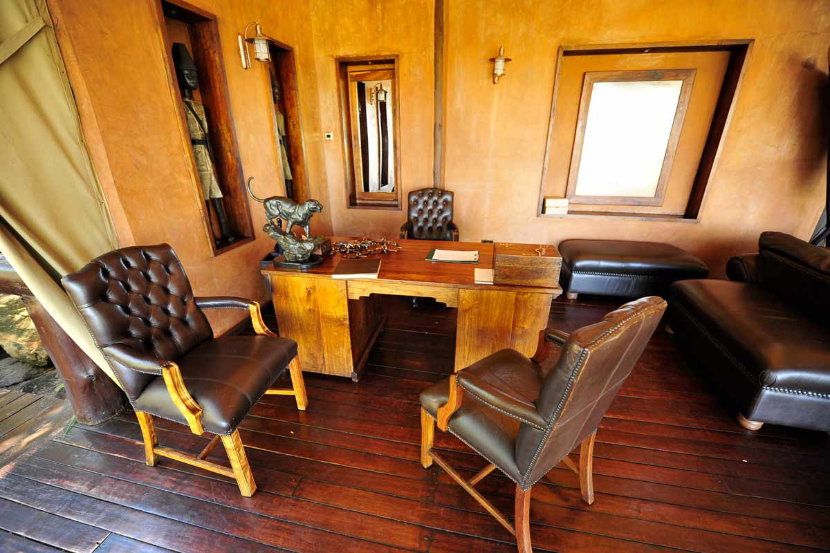 MIGRATION CAMP est l’un des lodges de la chaîne Elewana, la déclinaison de luxe de la chaîne Sopa. Cela explique le confort et la qualité des prestations. Cependant, la décoration manque d’originalité. L’accès à MIGRATION CAMP se fait par une passerelle en bois du plus bel effet. Les parties communes sont décorées de matériaux sombres en harmonie avec les nombreuses terrasses en bois foncé. On pourrait regretter l’usage du faux cuir pour les canapés et l’état de quelques chaises longues qui accusent un peu le poids des années…