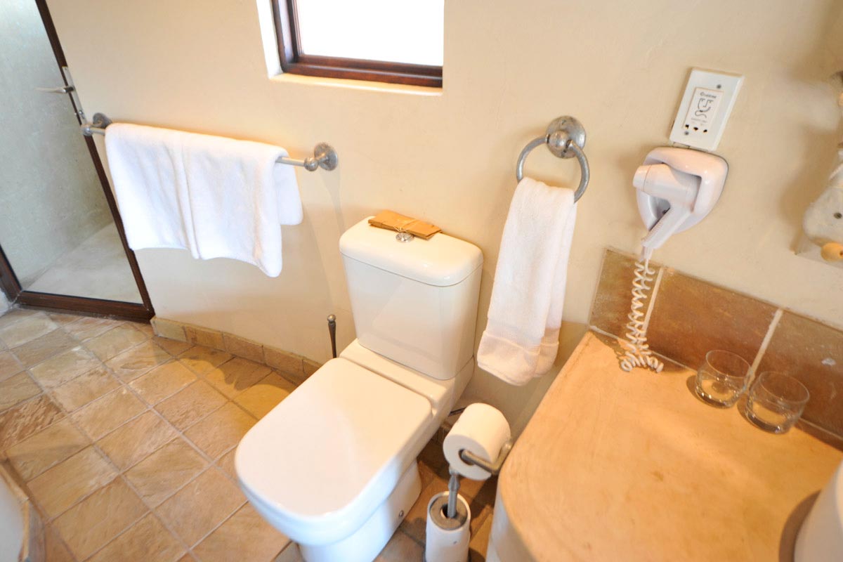 Les 16 chambres de MOTSWARI offrent un bon confort : terrasse, climatisation, coffre-fort, nécessaire à café et à thé, salle de bains avec baignoire et douche, parfois complétée par une douche extérieure.