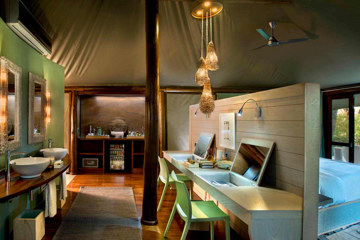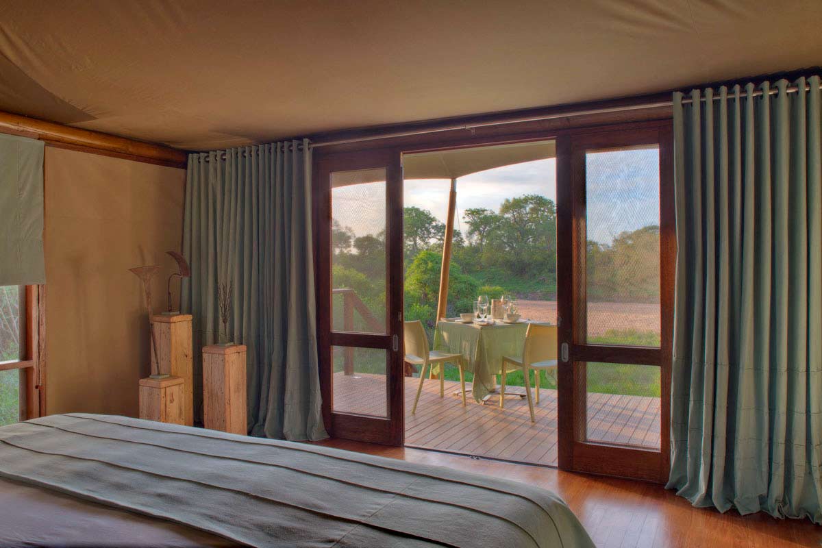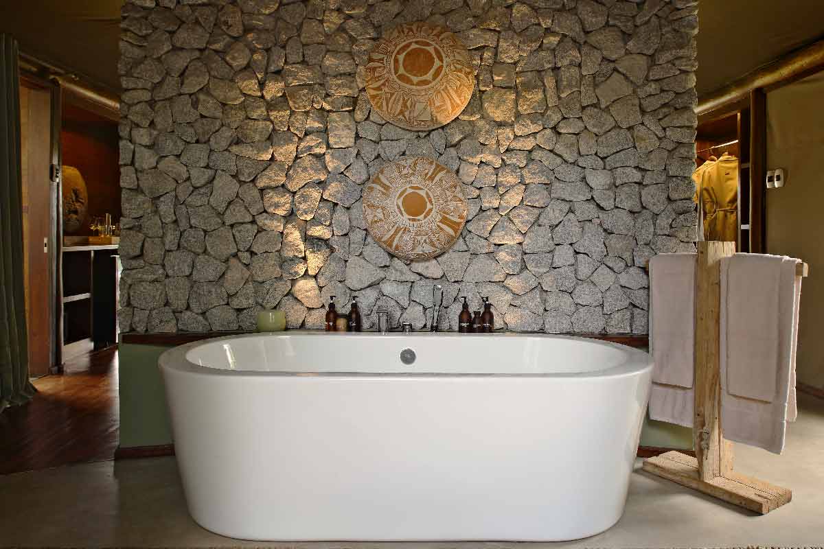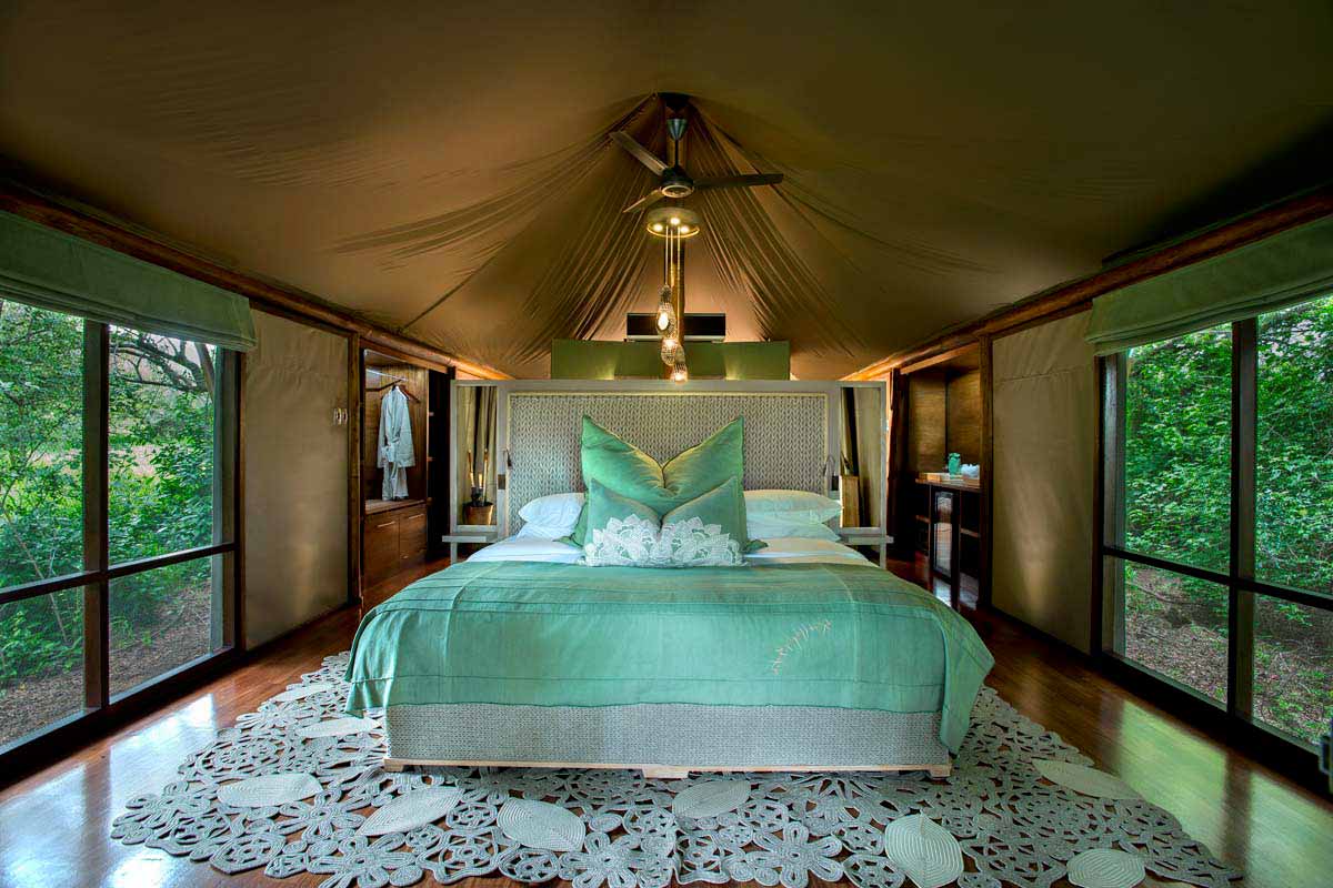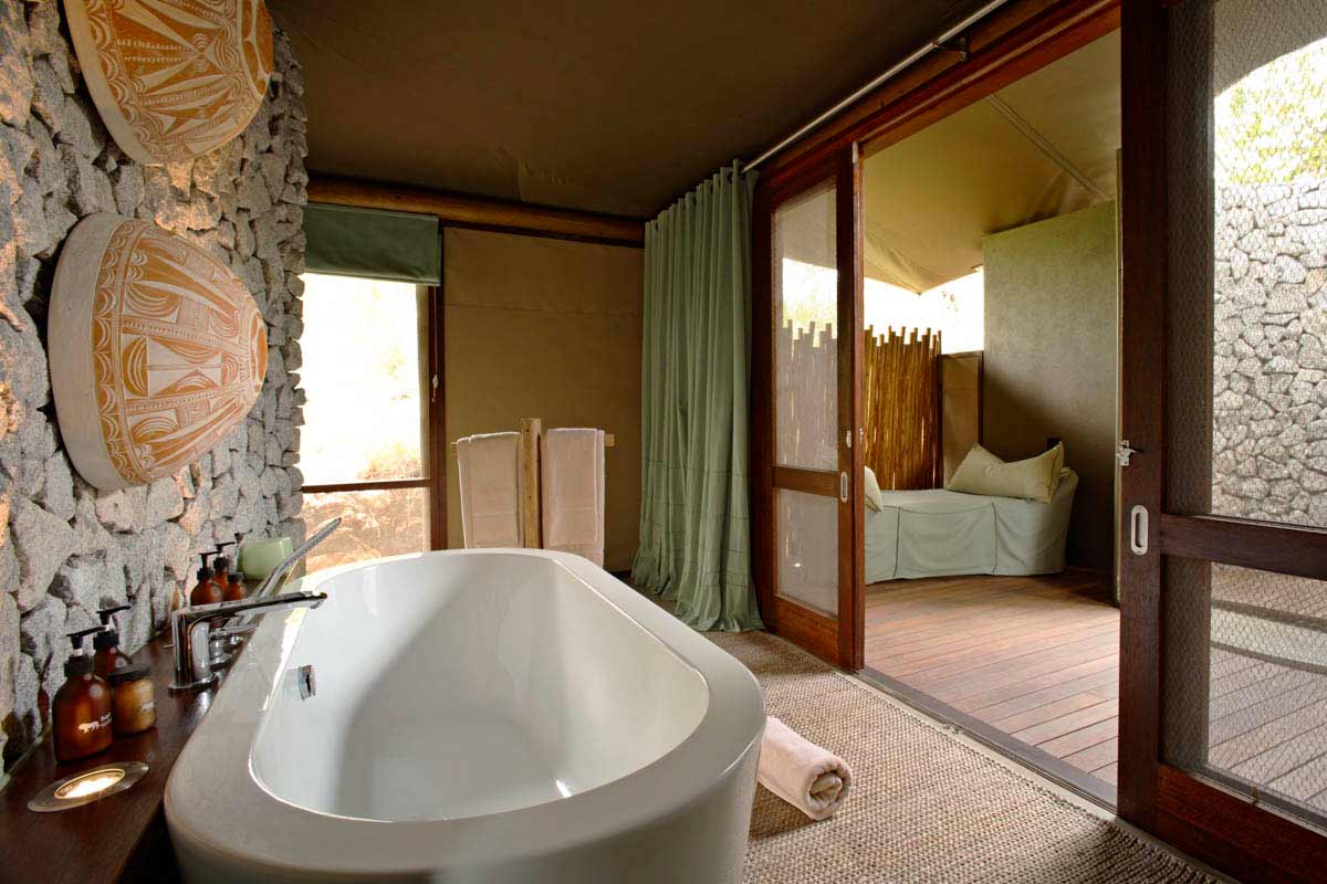 NGALA TENTED CAMP ne compte que 9 tentes : situées sur des plateformes en bois, elles offrent un bel espace et un confort exceptionnel : terrasse, climatisation, ventilateur, couvertures chauffantes pour les nuits d’hiver, salle de bains avec 2 vasques, baignoire, douche extérieure, toilettes séparées… Uns piscine et un petit spa sont à votre disposition.