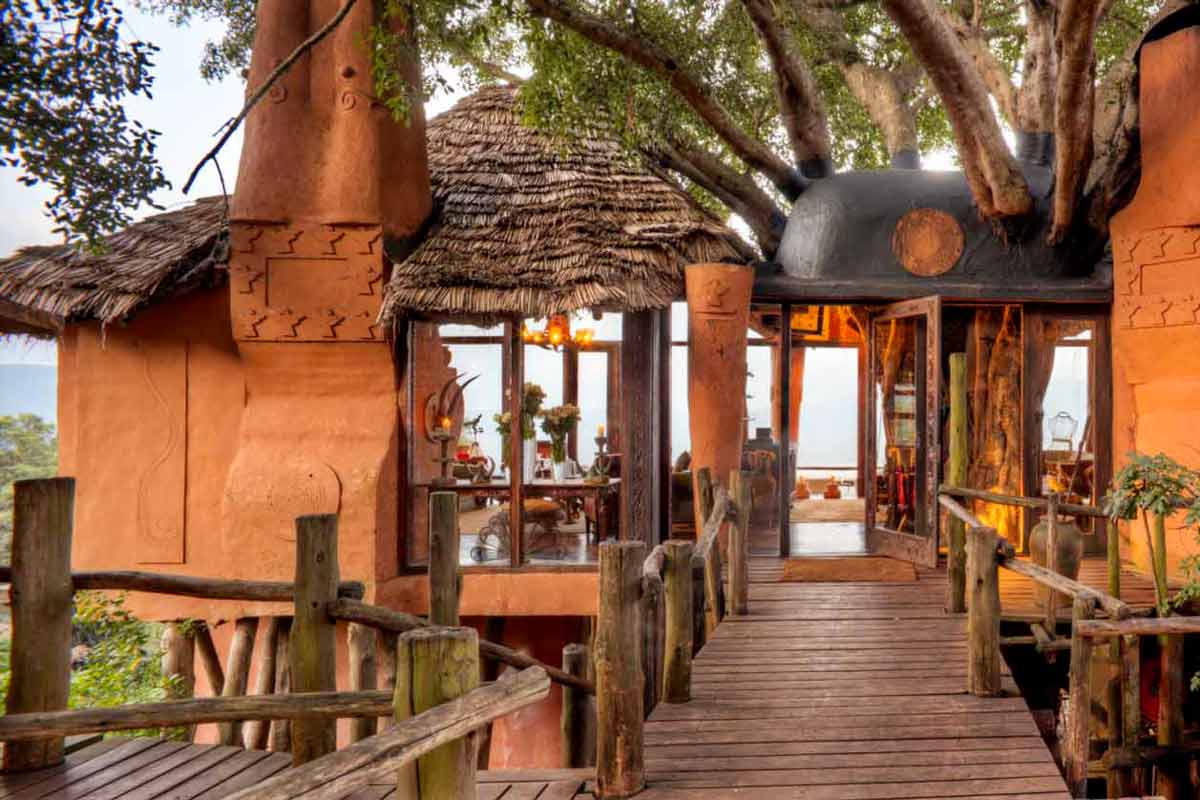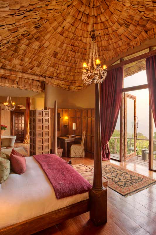 Niché sur les bords du cratère, le NGORONGORO CRATER LODGE offre une vue époustouflante, à plus de 2 000 m d’altitude. Mais, c’est surtout l’architecture et la décoration du lodge qui lui confèrent sa singularité : elles mêlent inspiration africaine et style baroque! Les lustres de cristal sont donc suspendus à des toits de feuilles de bananier, les coussins colorés égaillent les baldaquins de Zanzibar, les grands chandeliers et les miroirs apportent une touche de romantisme…Tout, au NGORONGORO CRATER LODGE, est irréel, sublime et raffiné.