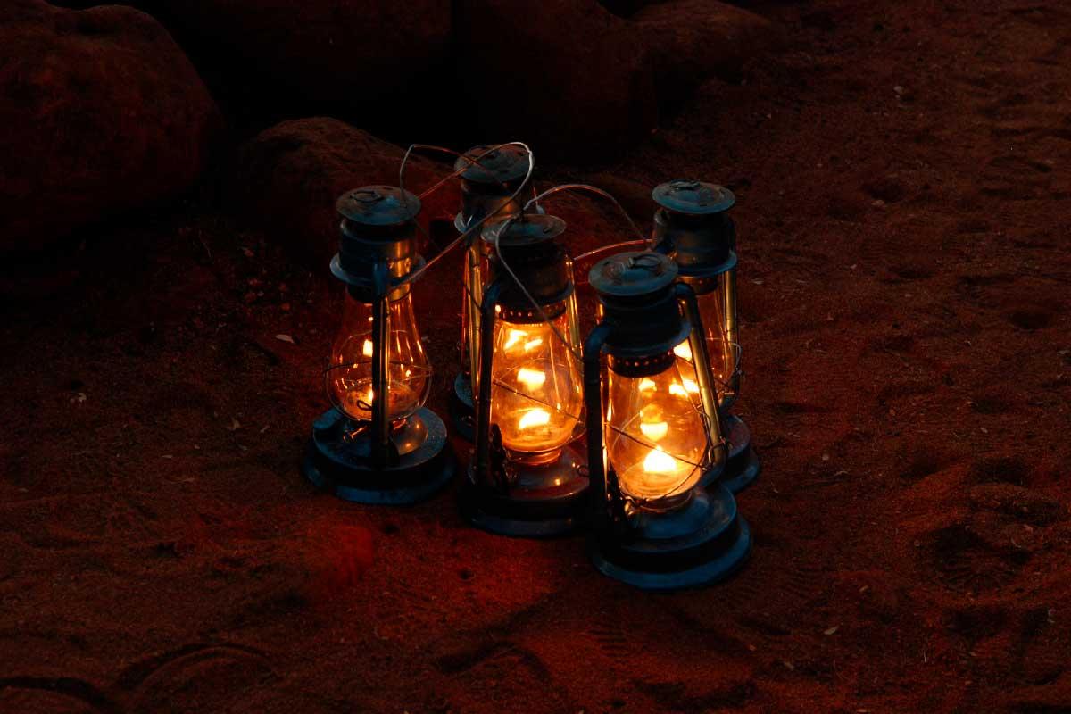 Les repas sont parfois pris à la belle étoile, sur une terrasse couverte d’herbe, à la lueur des lampes tempête…