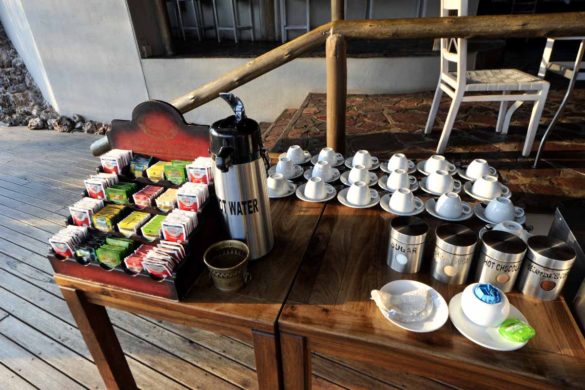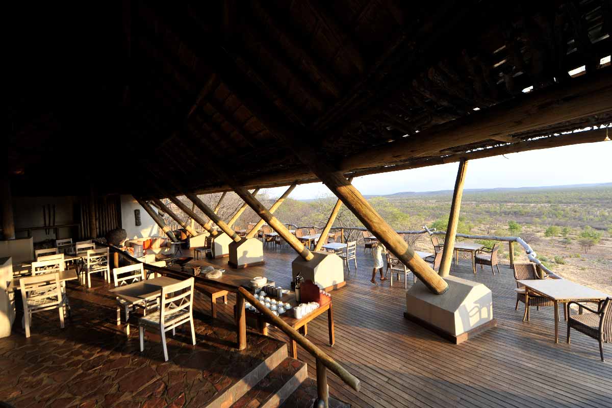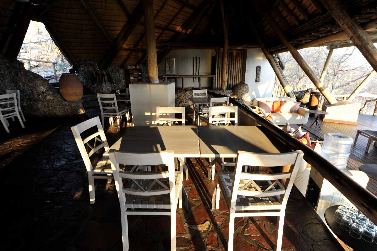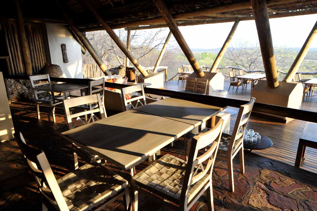 Les parties communes d’ONGAVA LODGE offrent une vue panoramique sur la réserve, qu’elles dominent. Quand le temps le permet, les repas sont pris sur la terrasse, face au point d’eau qui accueille, tout au long de la journée, de nombreux animaux qui viennent y boire. Les couchers de soleil sont ici merveilleux.