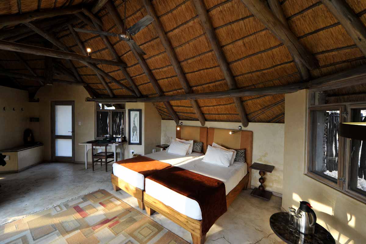 ONGAVA LODGE propose 14 chalets de pierre aux toits de chaume. La décoration est très soignée, les matériaux et les couleurs agréables. Les chambres sont climatisées et spacieuses. Leur grande terrasse offre une vue infinie sur les plaines sauvages. Les salles de bains proposent une douche intérieure, 2 vasques, toilettes séparées et une douche extérieure.