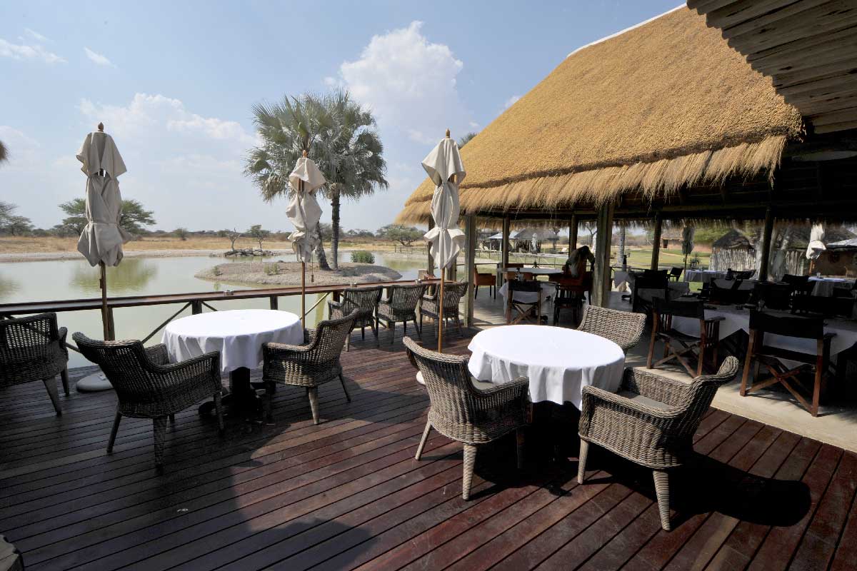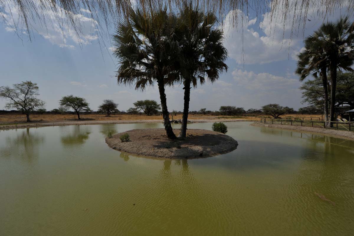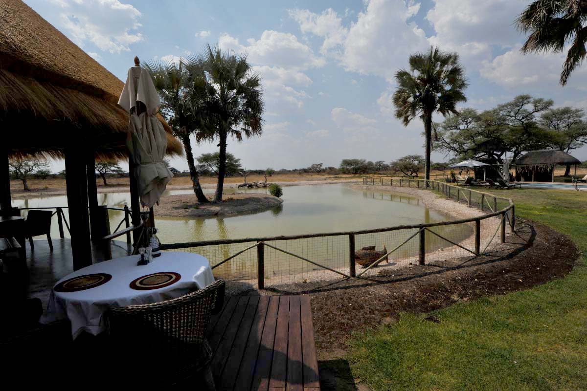 Les vastes parties communes sont agréables. Elles font face à un grand point d’eau qui attire les animaux. Les terrasses offrent une très belle vue.