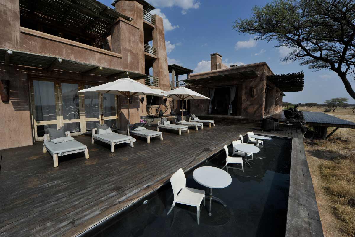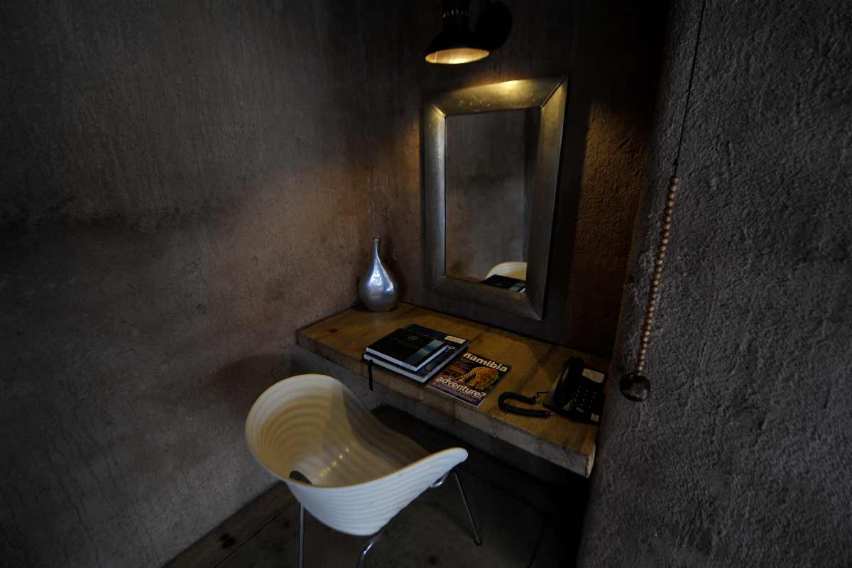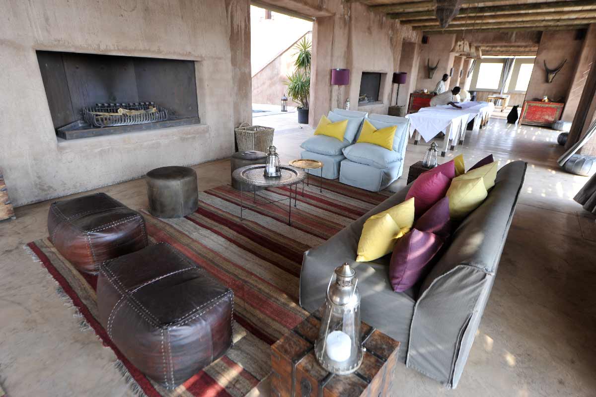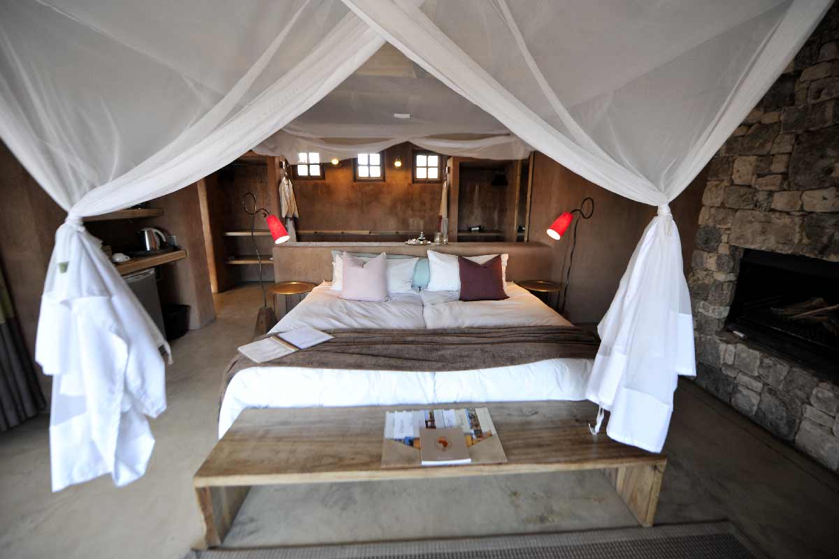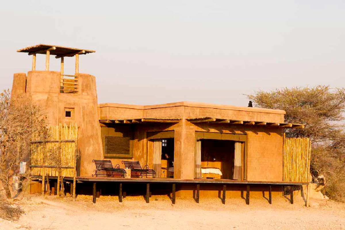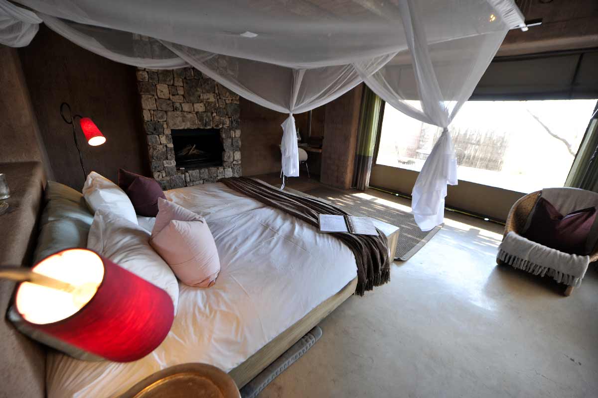 ONGUMA THE FORT propose 13 suites spacieuses situées autour du bâtiment principal : chambre, dressing, grande salle de bains avec douche intérieure et extérieure, climatisation, cheminée…