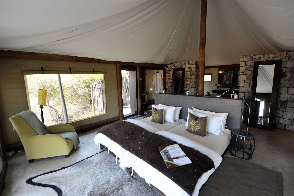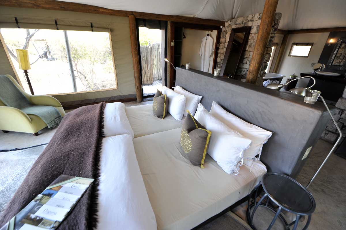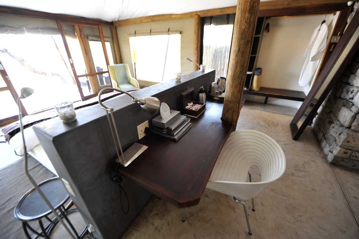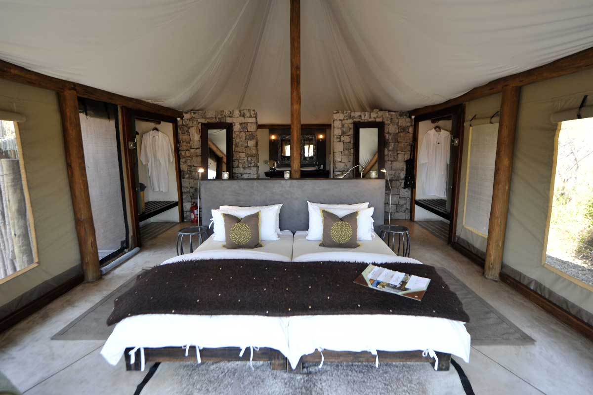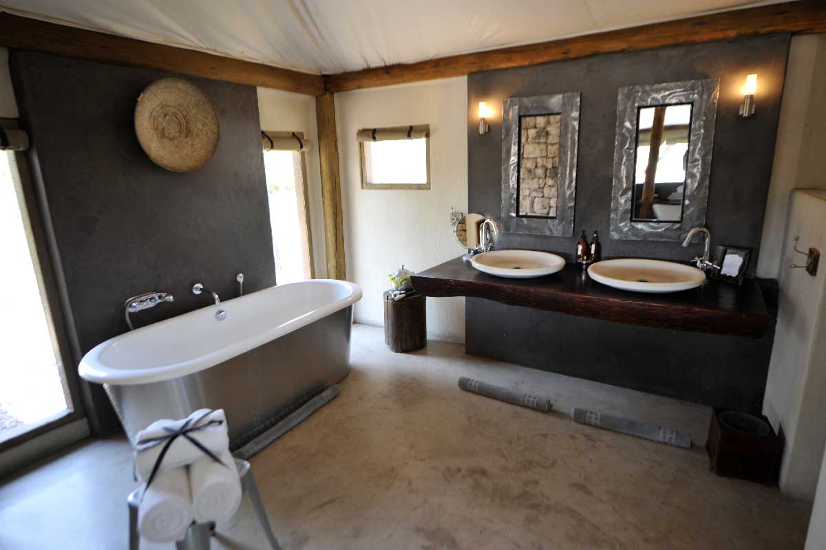 ONGUMA TENTED CAMP propose 7 tentes raffinées où se mêlent le bois, la pierre, l’acier, le lin… dans des coloris agréables : gris, crèmes, vert anis… Elles sont spacieuses et offrent une belle terrasse avec vue sur le bush. Leur salle de bains comporte une baignoire et une douche.