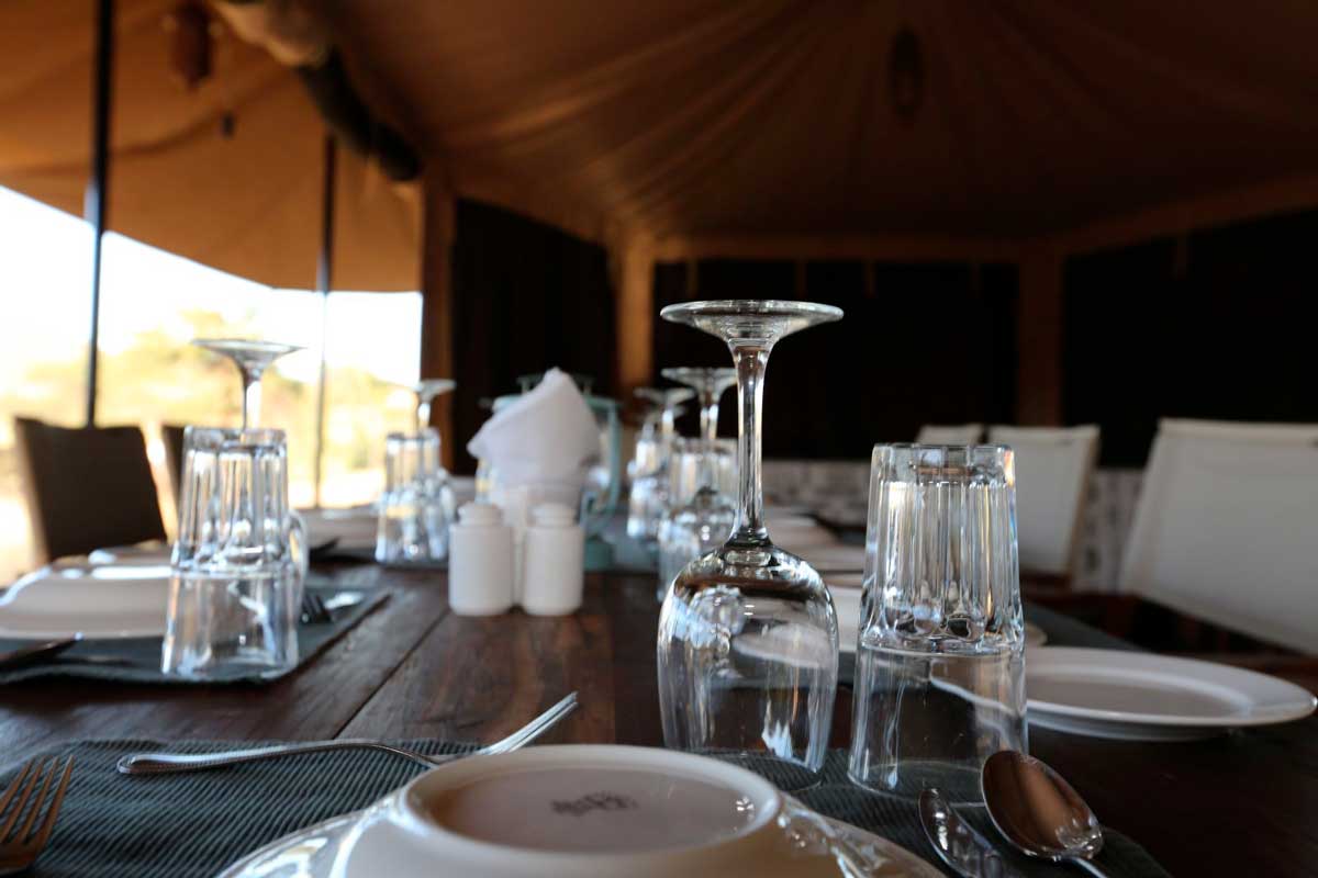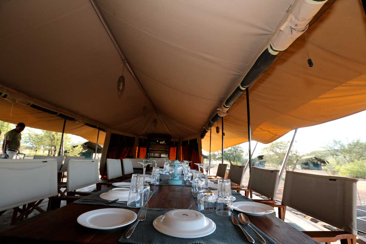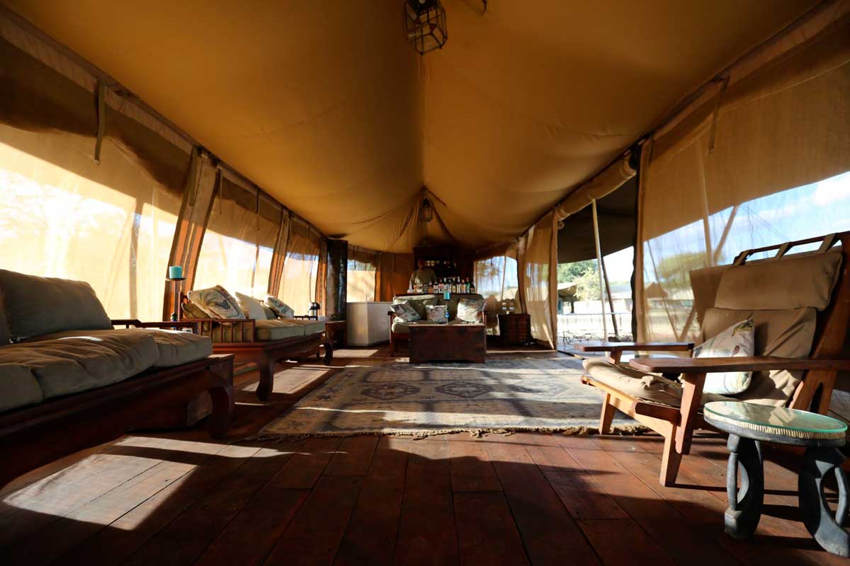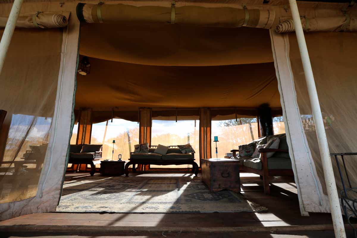 2 grandes tentes accueillent les parties communes de RONJO CAMP : l’une le salon et le bar, l’autre le restaurant.