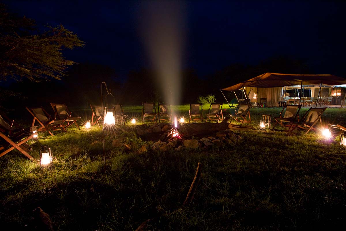 Après le dîner, le feu de camp permet la rencontre avec les masais qui gardent le camp : une ambiance et une expérience rares.